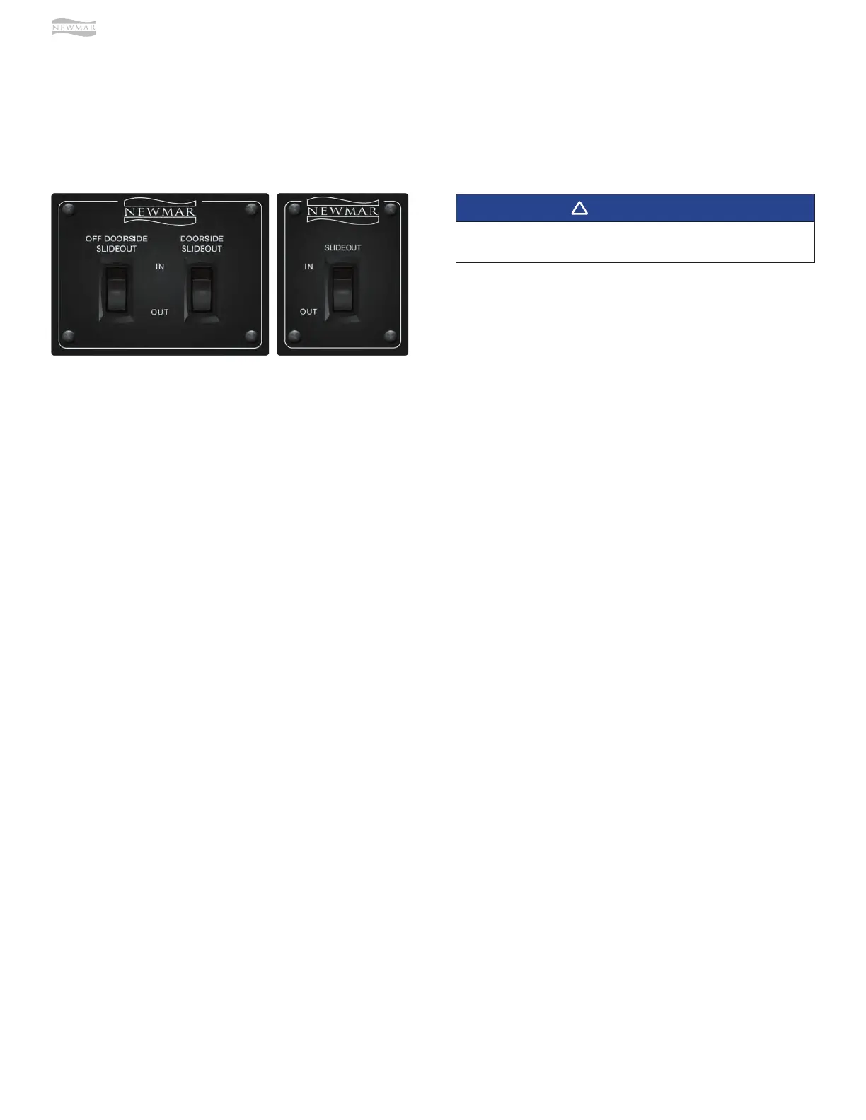 • On gas coach slideouts: Ignition key must be turned