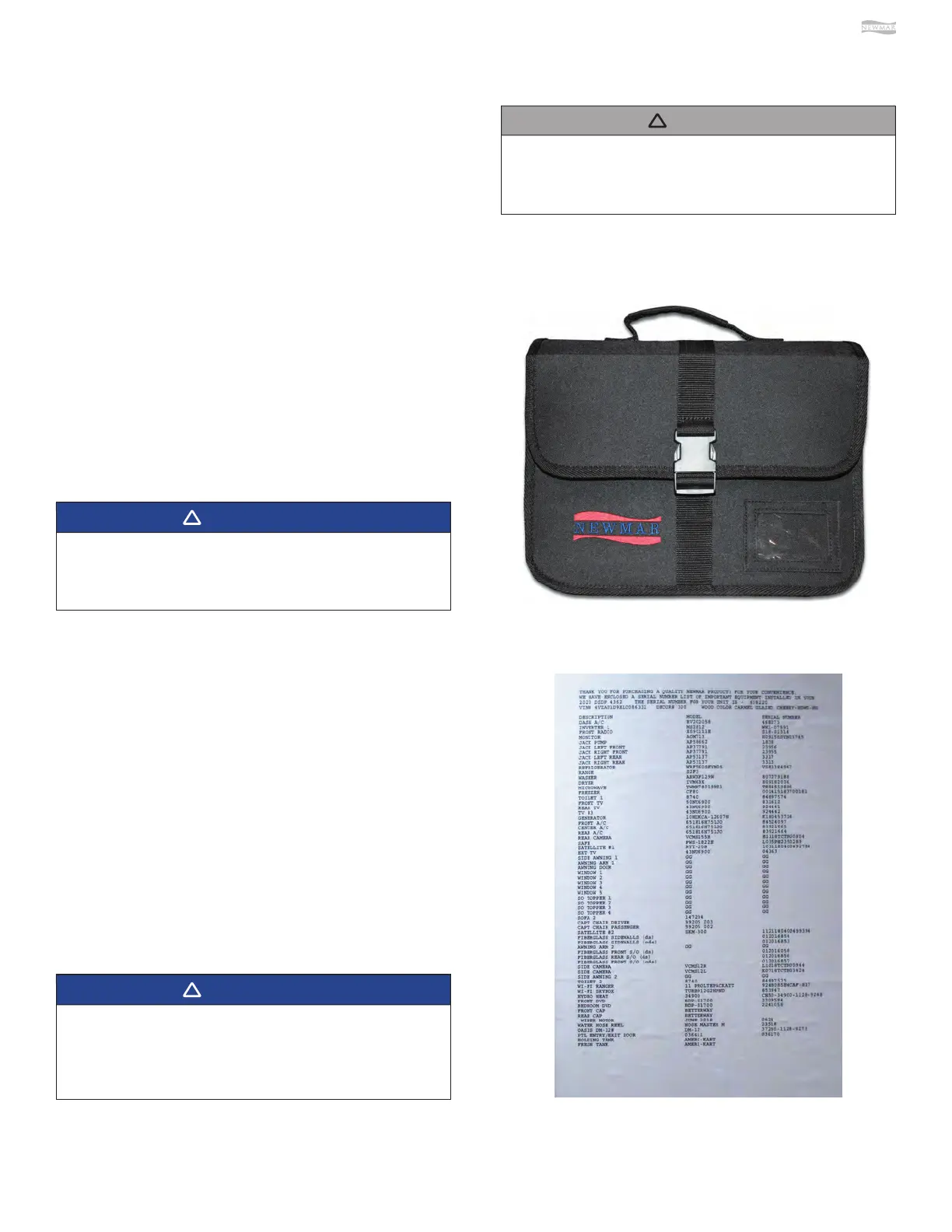 Owner’s Information Package (Black Bag) and Newmar Owner’s