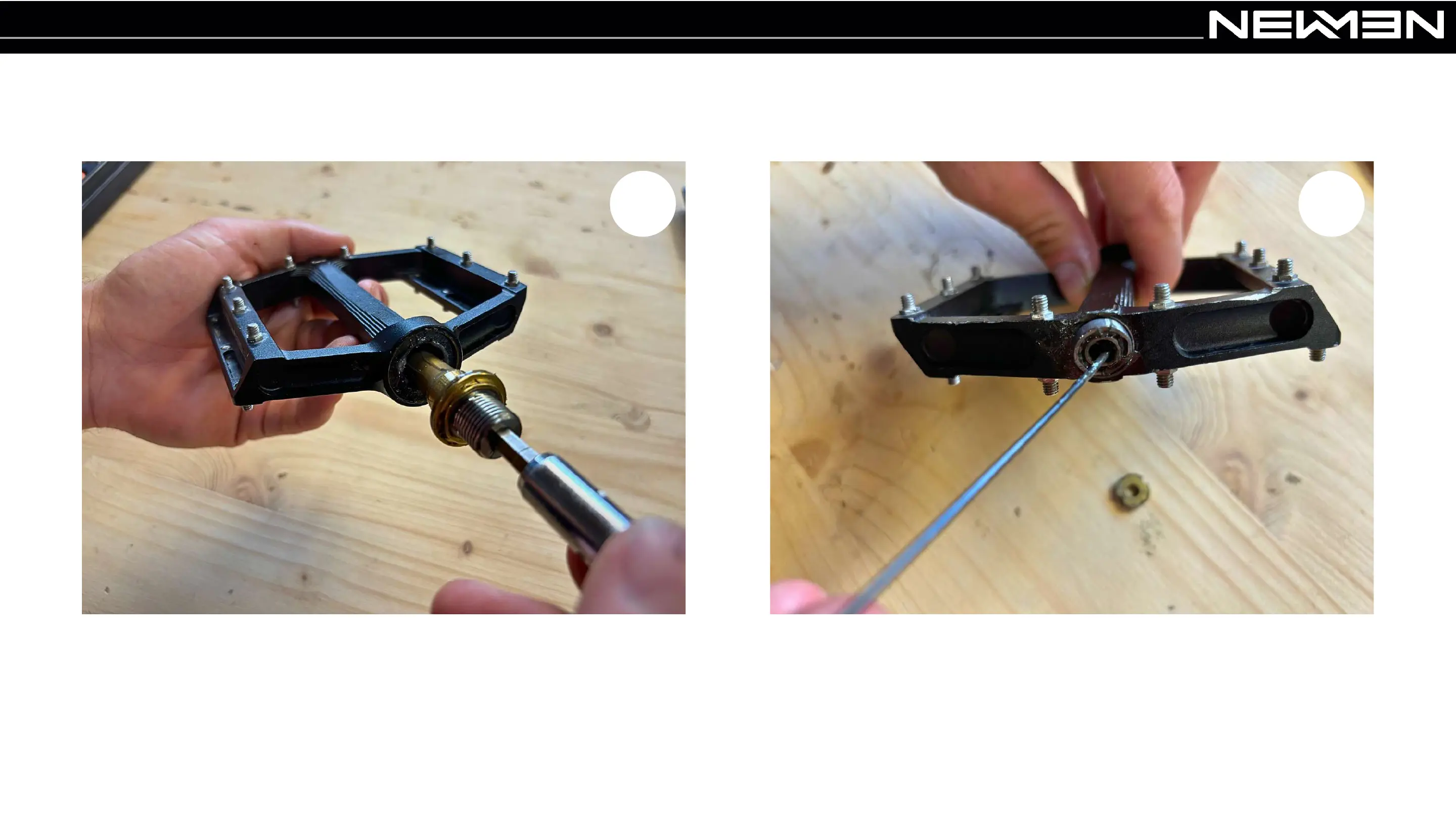 Take the axle out of the pedal body. Take the brass washer and the bearing out of the pedal body.