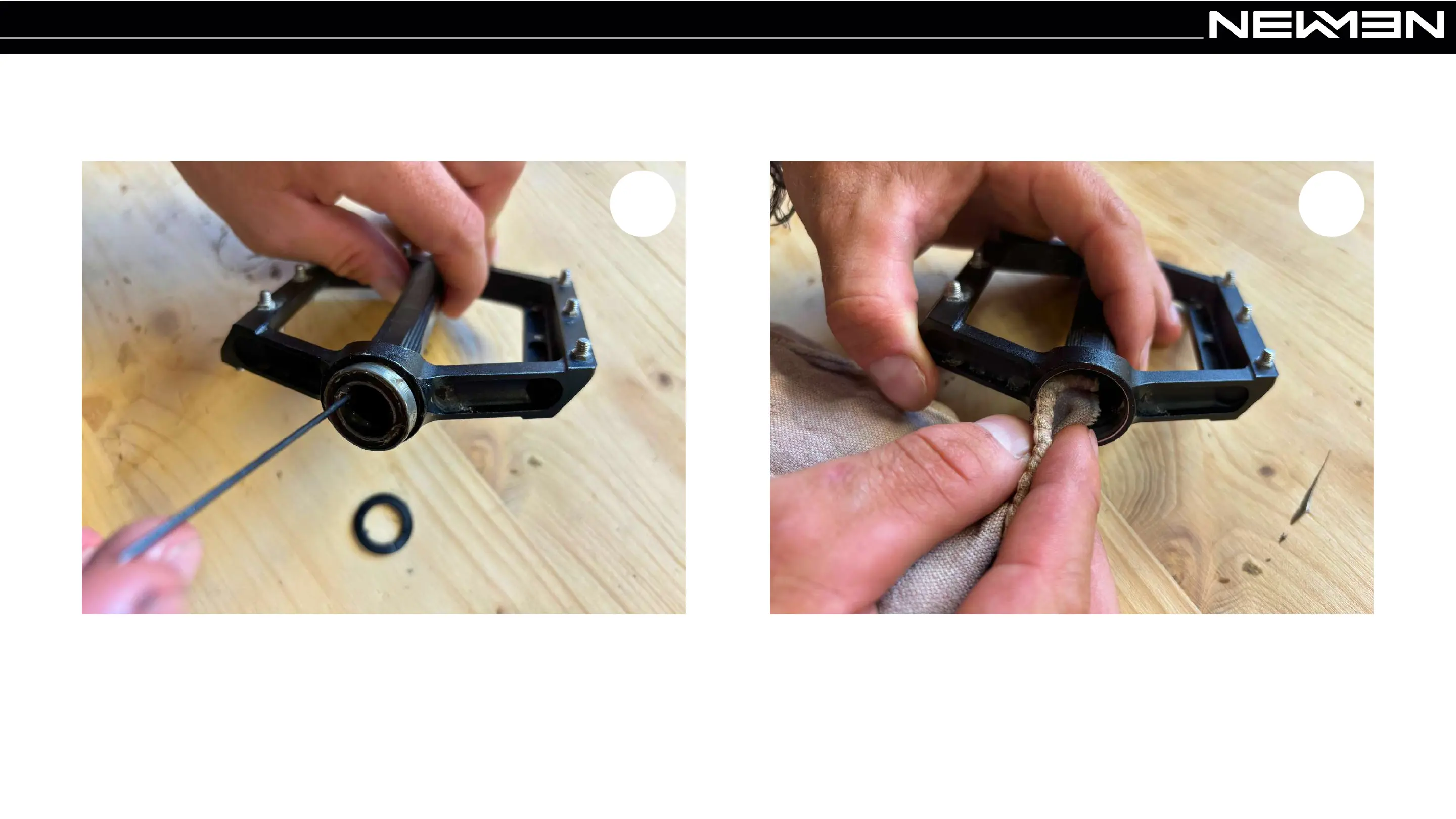Take the spring washer and the bearing out of the pedal body on the other side. Clean the pedal body and the spring washers and remove old grease.