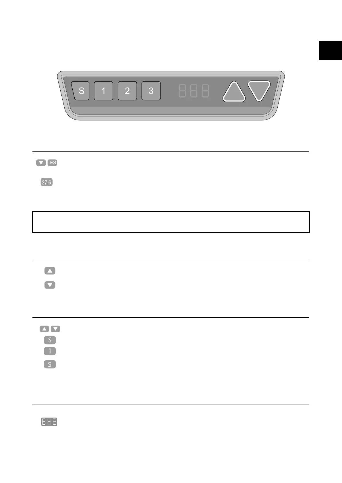 1. Keep pressing down key until the display shows"E-1"and`'rES" alternately and release the key.