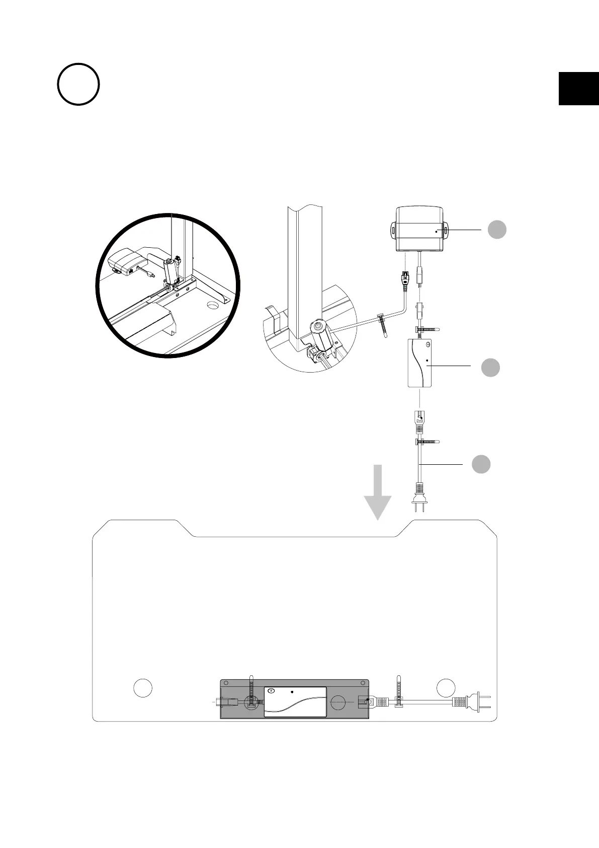 Instale la caja de control en una posición adecuada del borde del escritorio