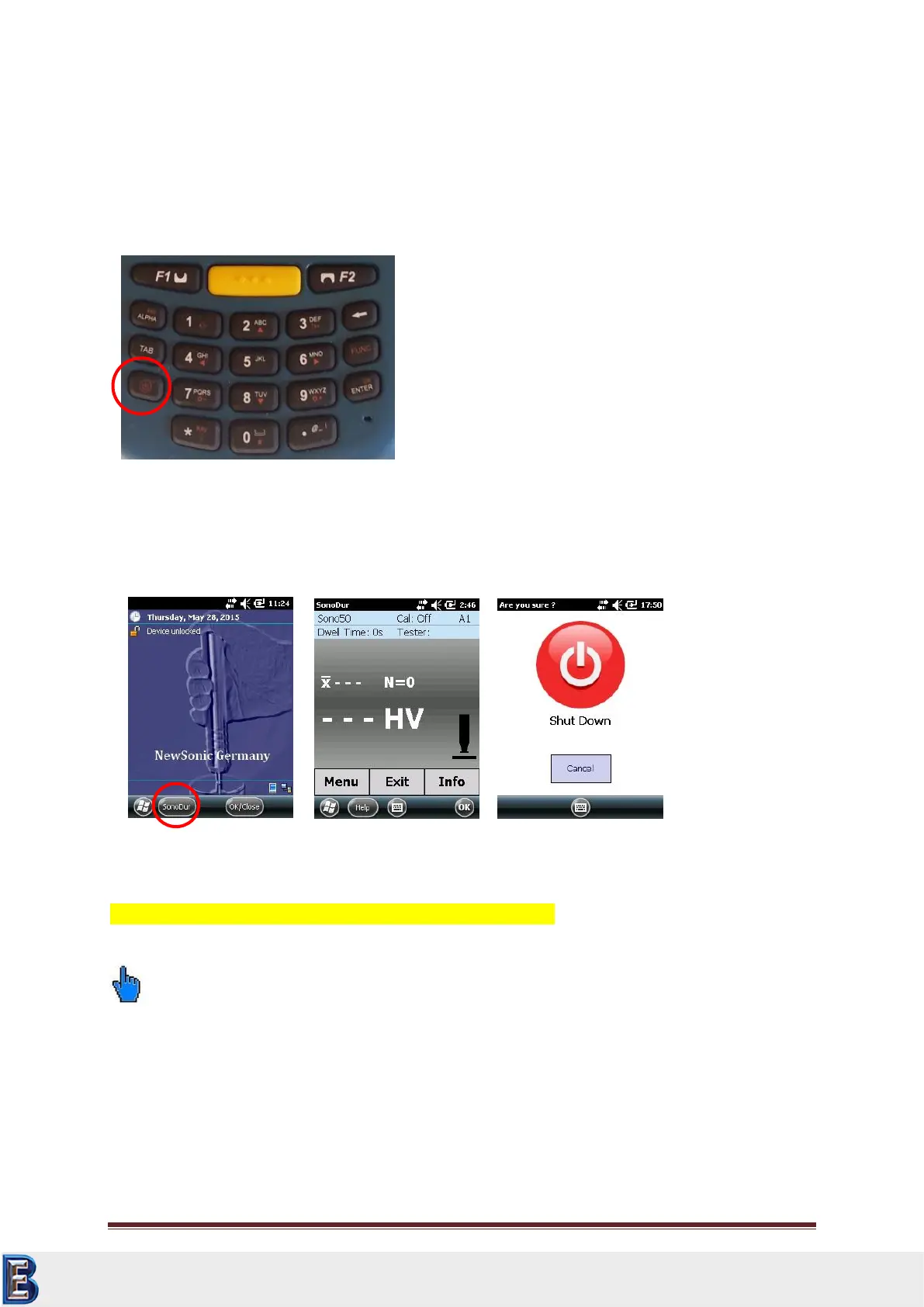 To start the SonoDur program, please press the function key F1 or touch the SonoDur icon on the