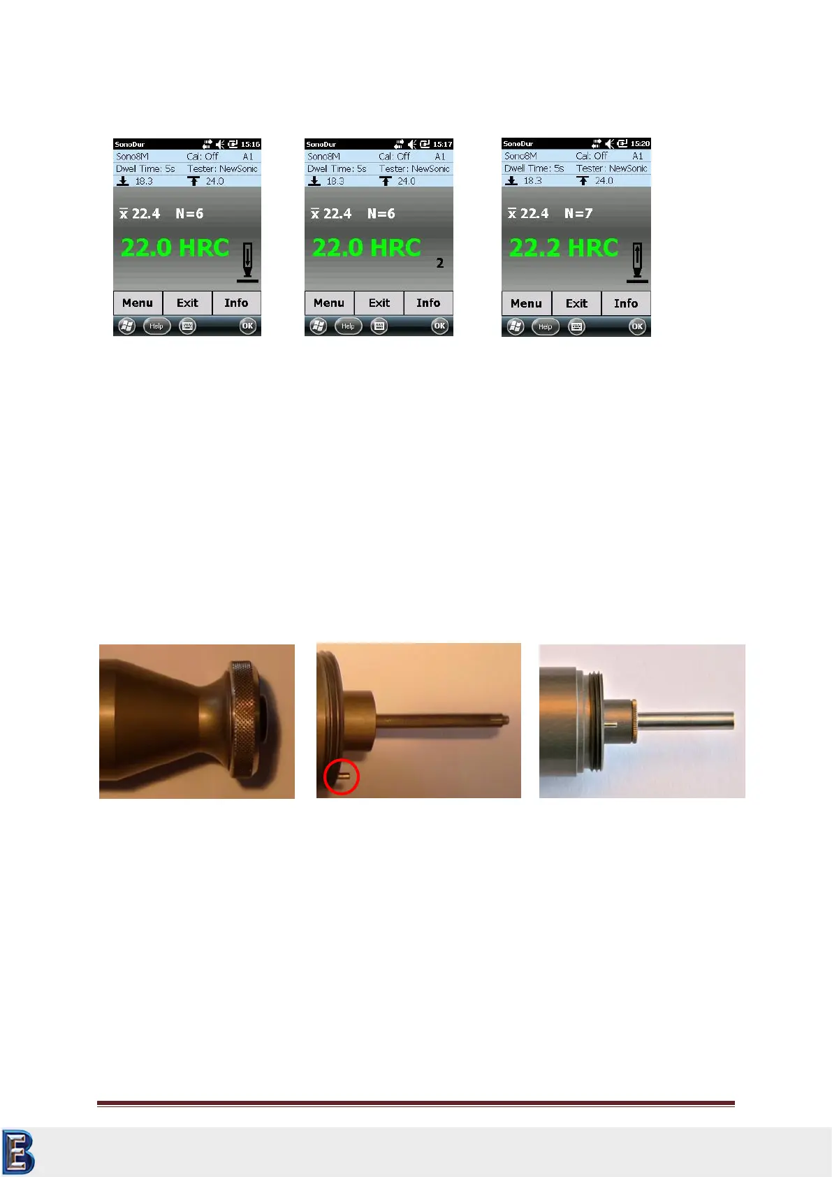 Figure 7.13 until Figure 7.15: Probe movement, countdown of penetration time (in this case, 2 sec),