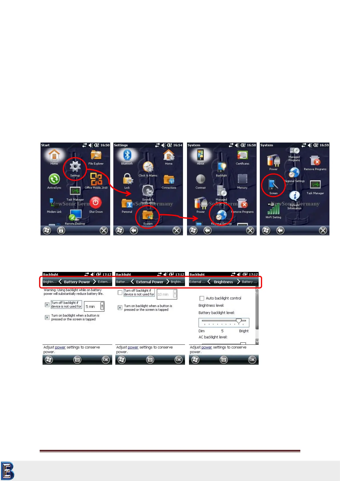 The settings for the behavior for battery and mains operation and backlight control could be select