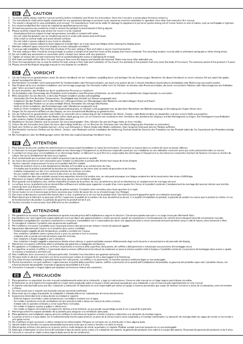 NewStar Neomounts CPU-D200SILVER - General Safety Precautions; Installation Safety Warnings