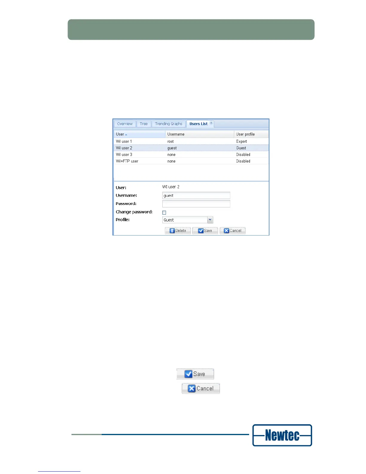 - Guest: the user has read-only access to the typical configuration and