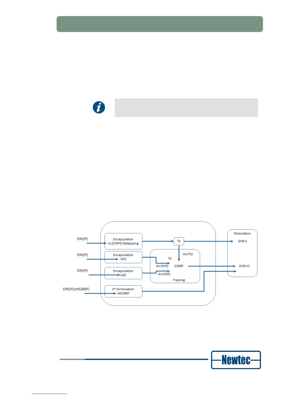 • Air(S2BBF): Incoming baseband frames are modulated directly on the DVB-S2