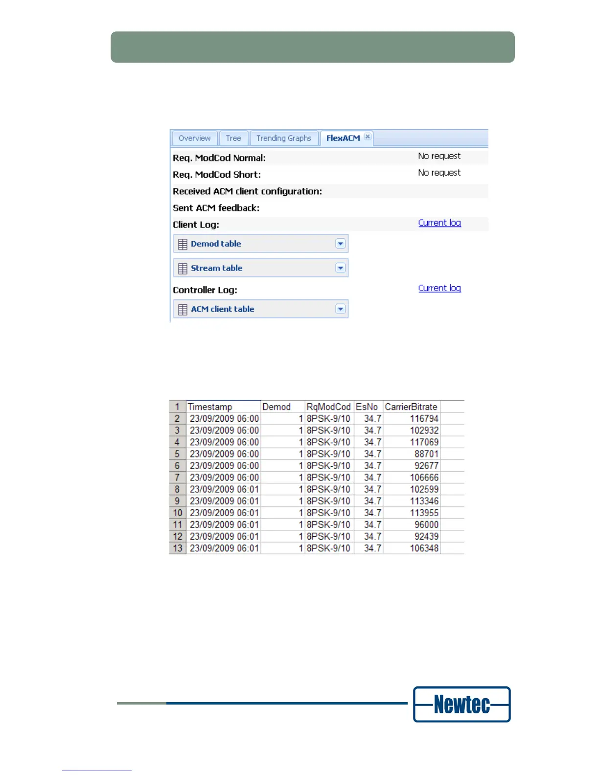 Click on Demod Table to Check the ACM status: