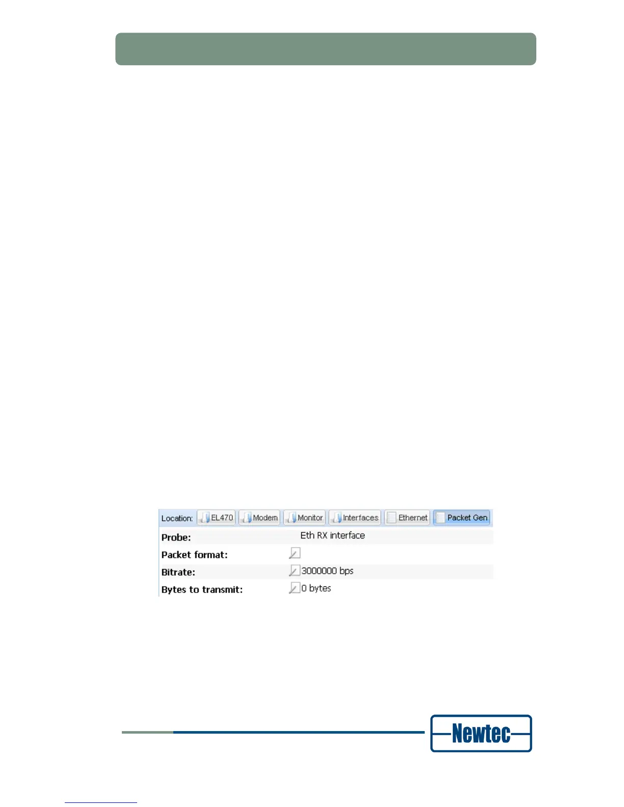 Go to the EL470 >> Modem >> Monitor >> Interfaces >> Ethernet >> Packet Gen