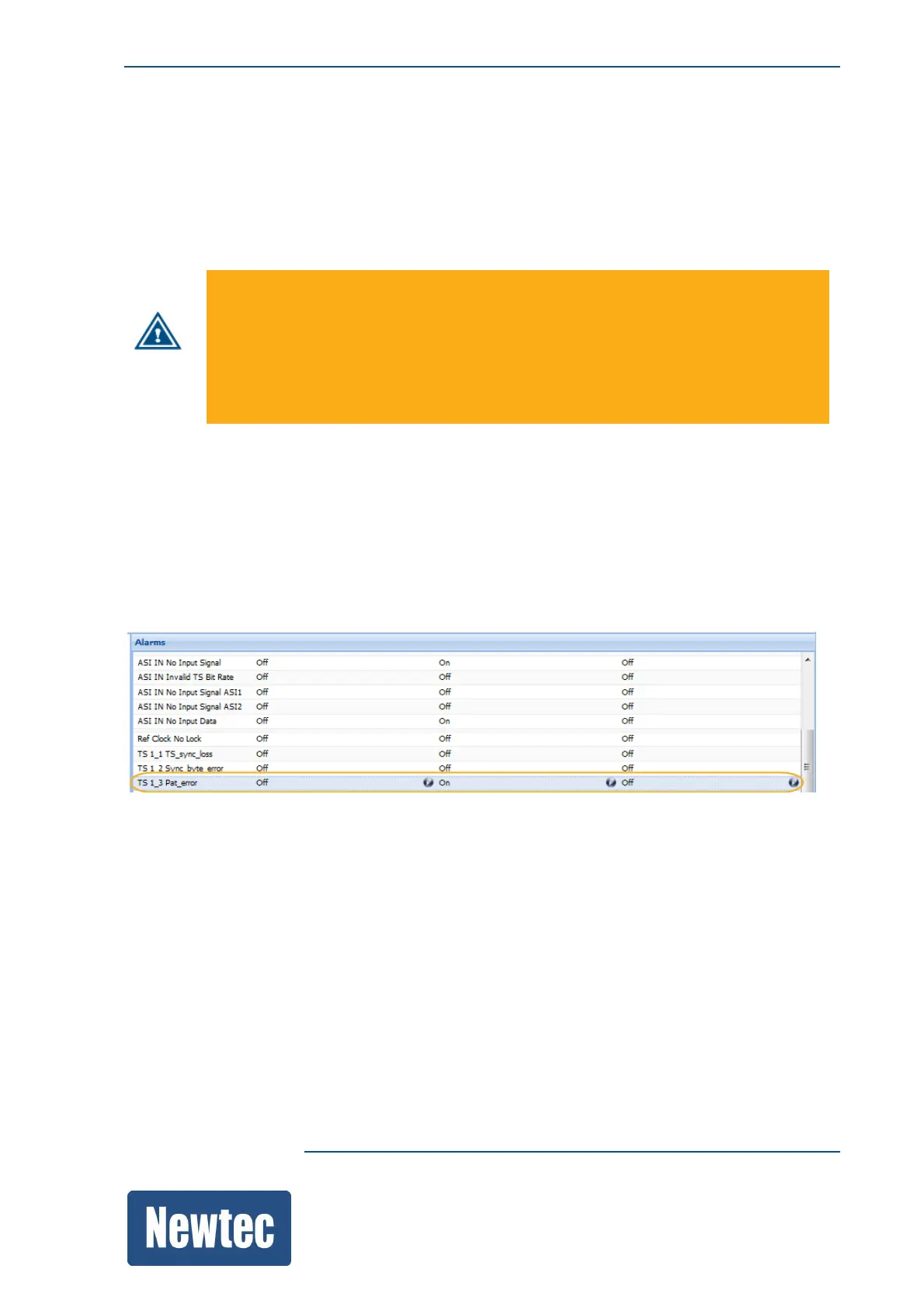 When a PAT error is present, the general interface alarm is also triggered and displayed in the