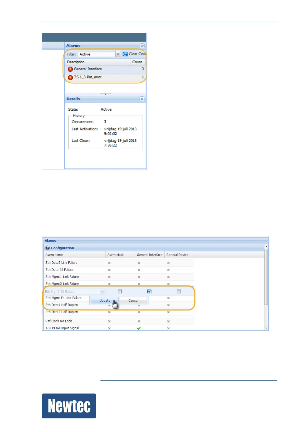 The next time when the Eth Mgmt Itf Failure alarm is present, a General Interface alarm is triggered.
