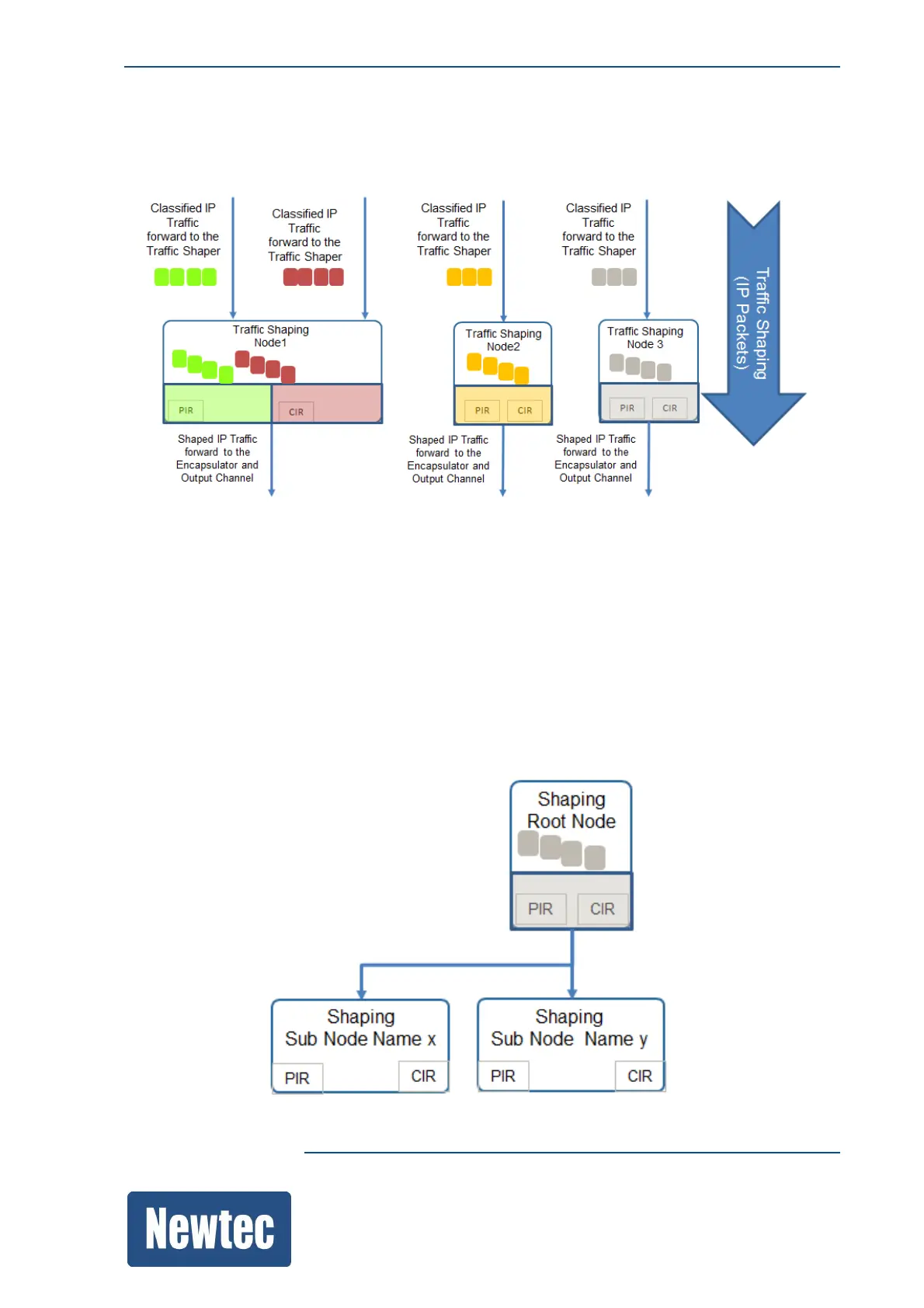 The following figure illustrates how the classified traffic is shaped by the traffic shaper.