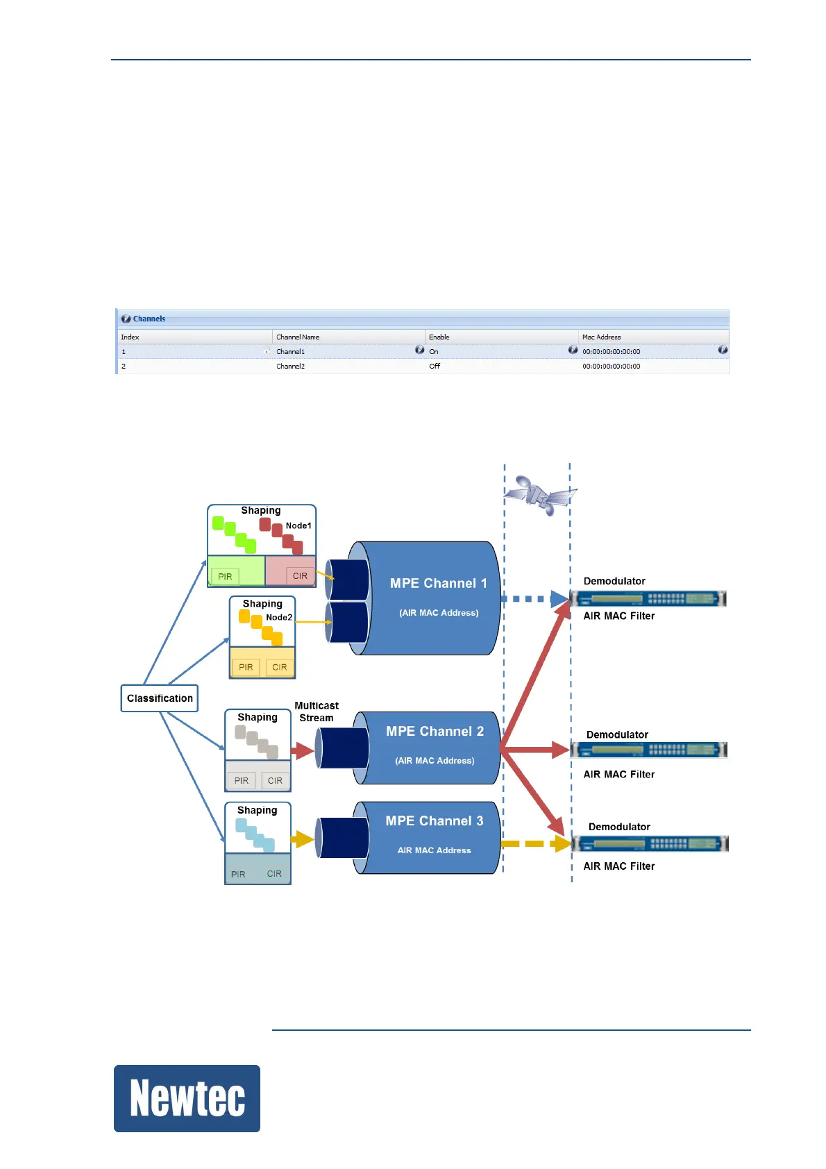 (Combining traffic from different shaping nodes is done by assigning the same Channel Name per