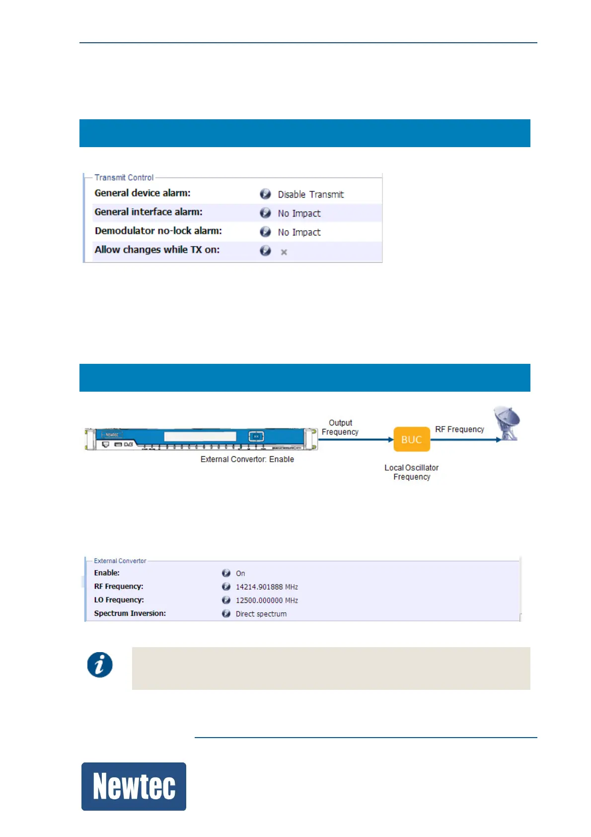 Navigate to enable the use of an external convertor (For example a Block Up Converter BUC).