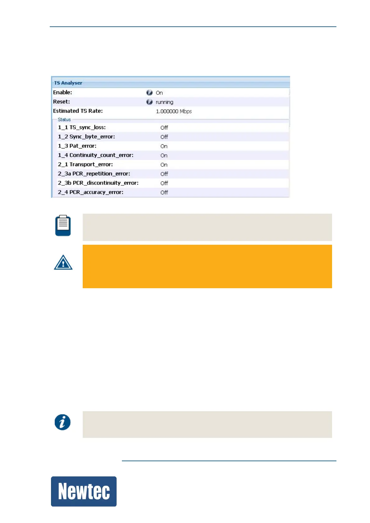 • The TS analyser errors are associated with an interface alarm and they can be