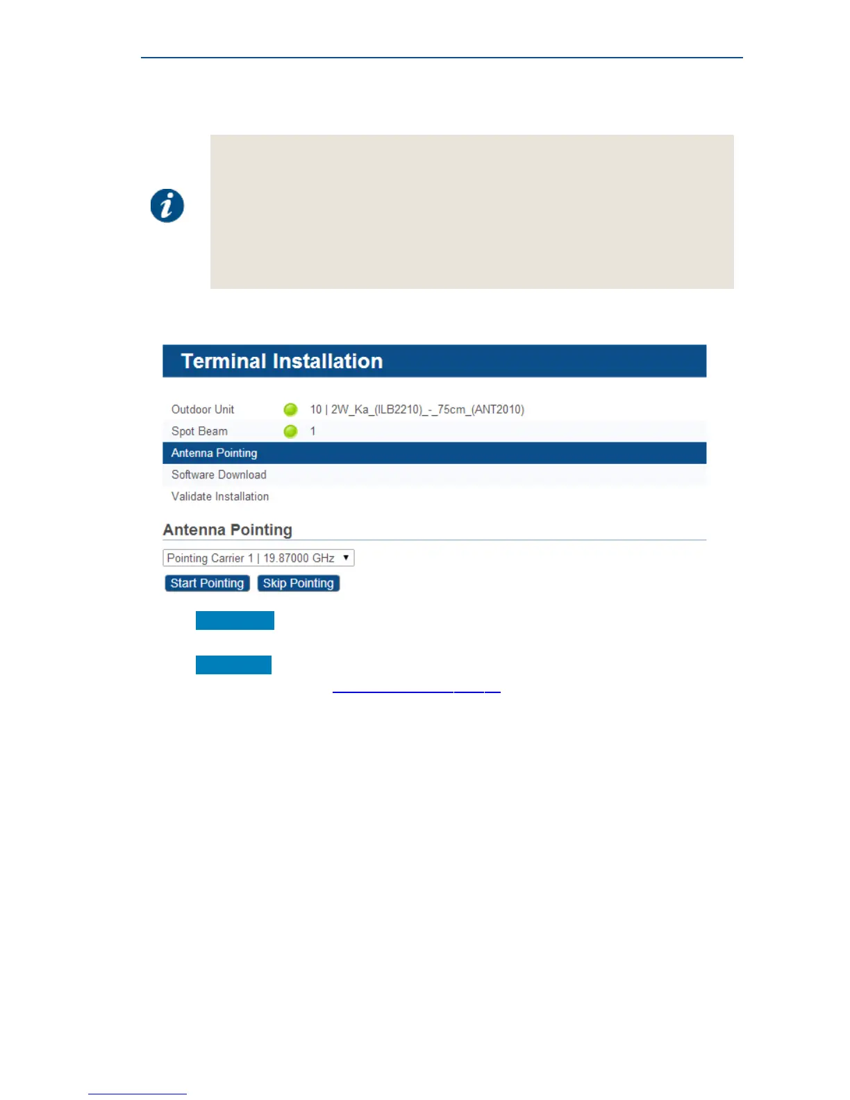 » Click Skip Pointing to skip the pointing procedure (use if the antenna is already correctly