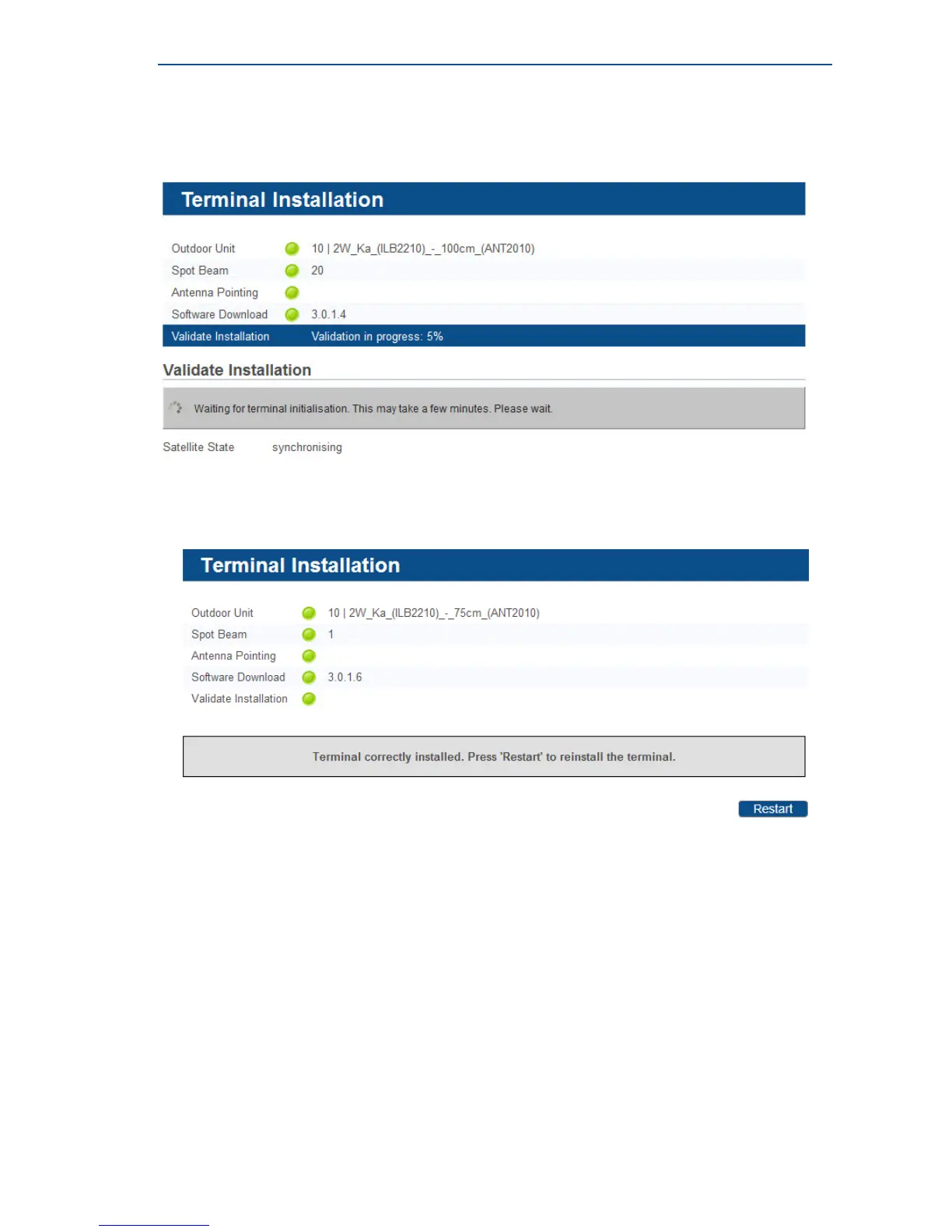 The modem will now check if the quality of the installation needs to be validated.