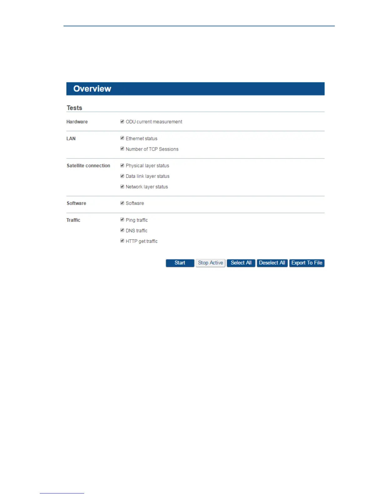To view the functioning status of the satellite terminal, or to identify problems that may occur, several
