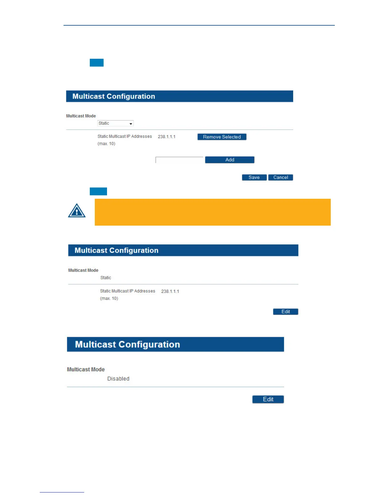 • Click Save in the Web Interface > Edit Multicast configuration to save the new settings.