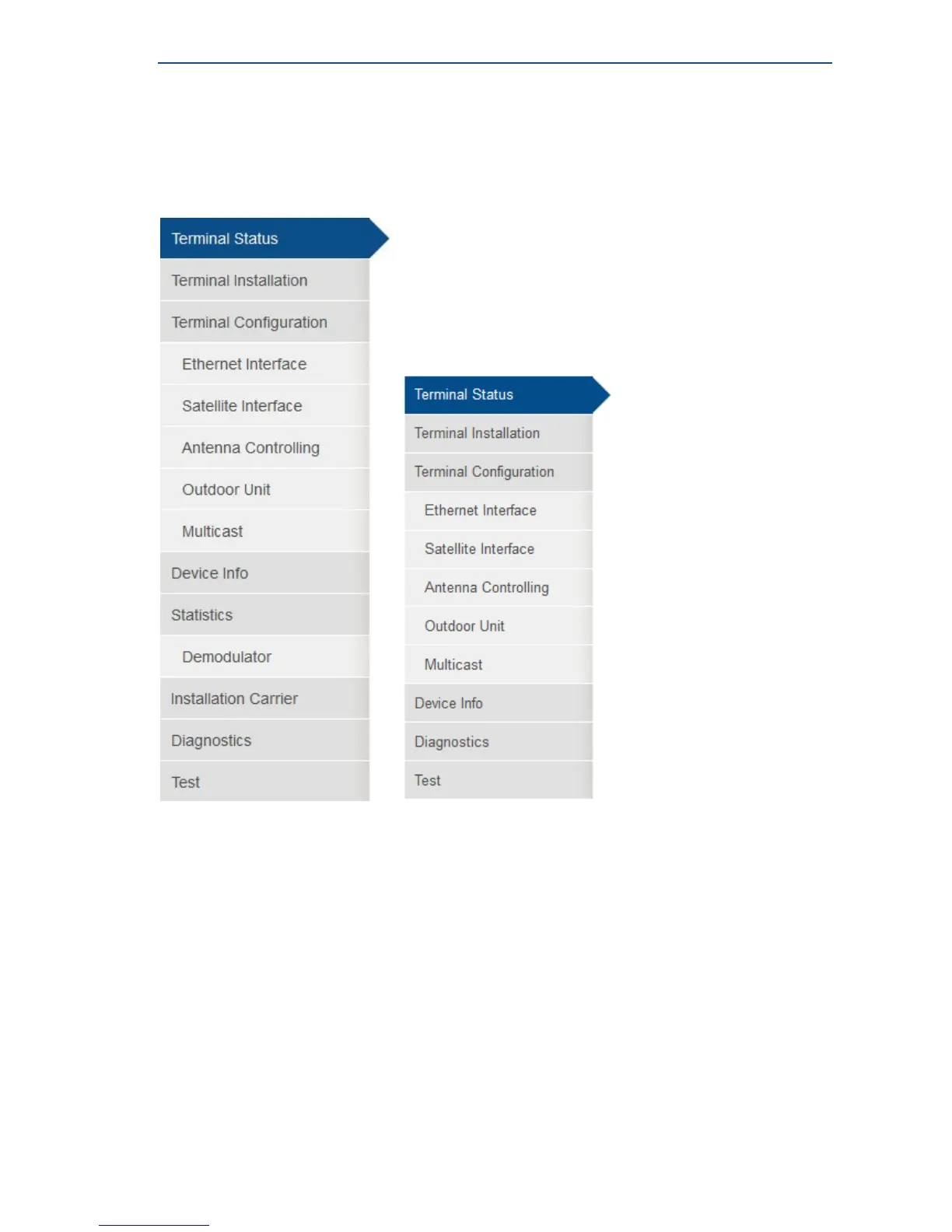 the Demodulator Statistics, Installation Carrier and Diagnostics submenus are not available in