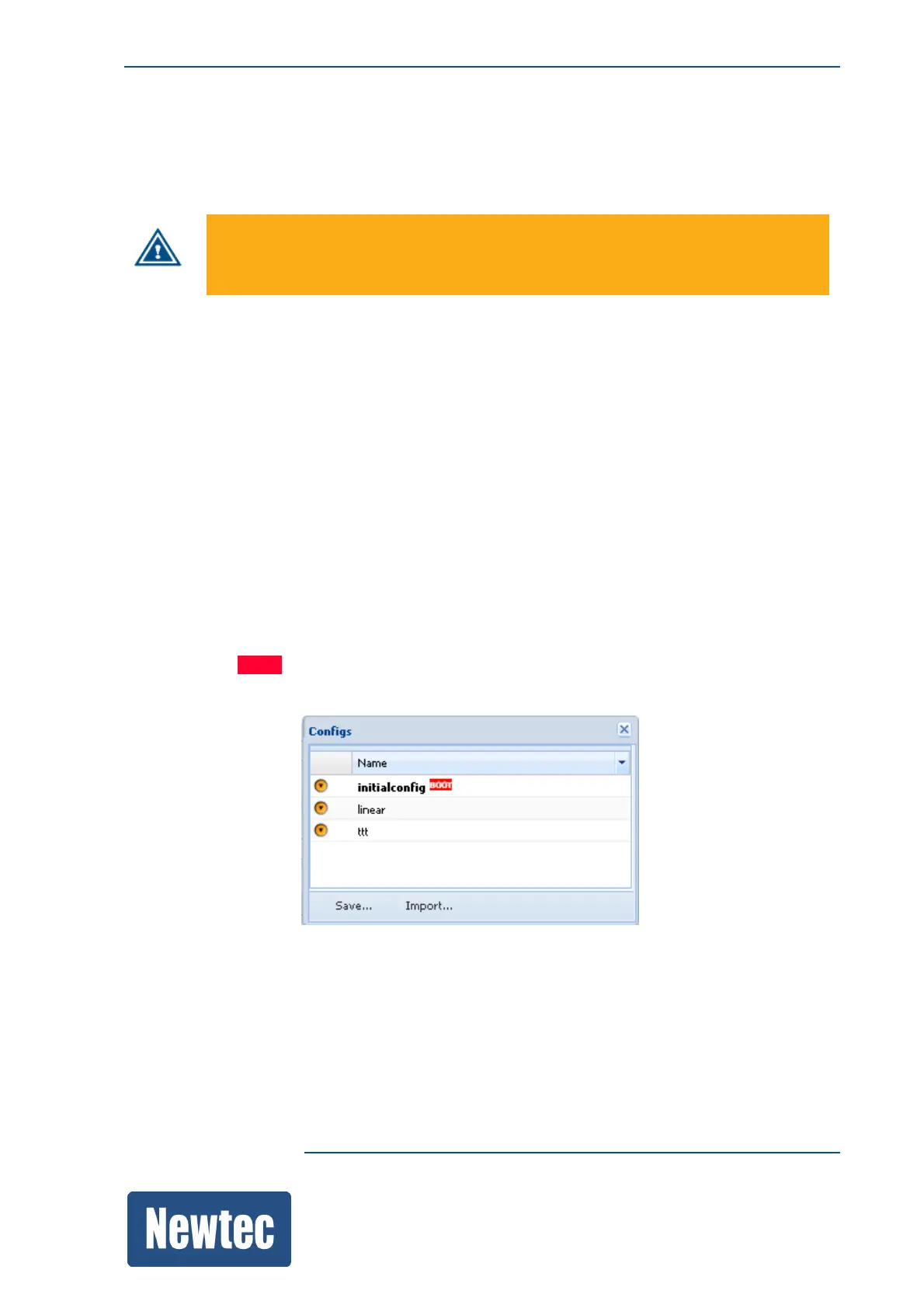 When a configuration is completed, it is recommended to save this configuration onto