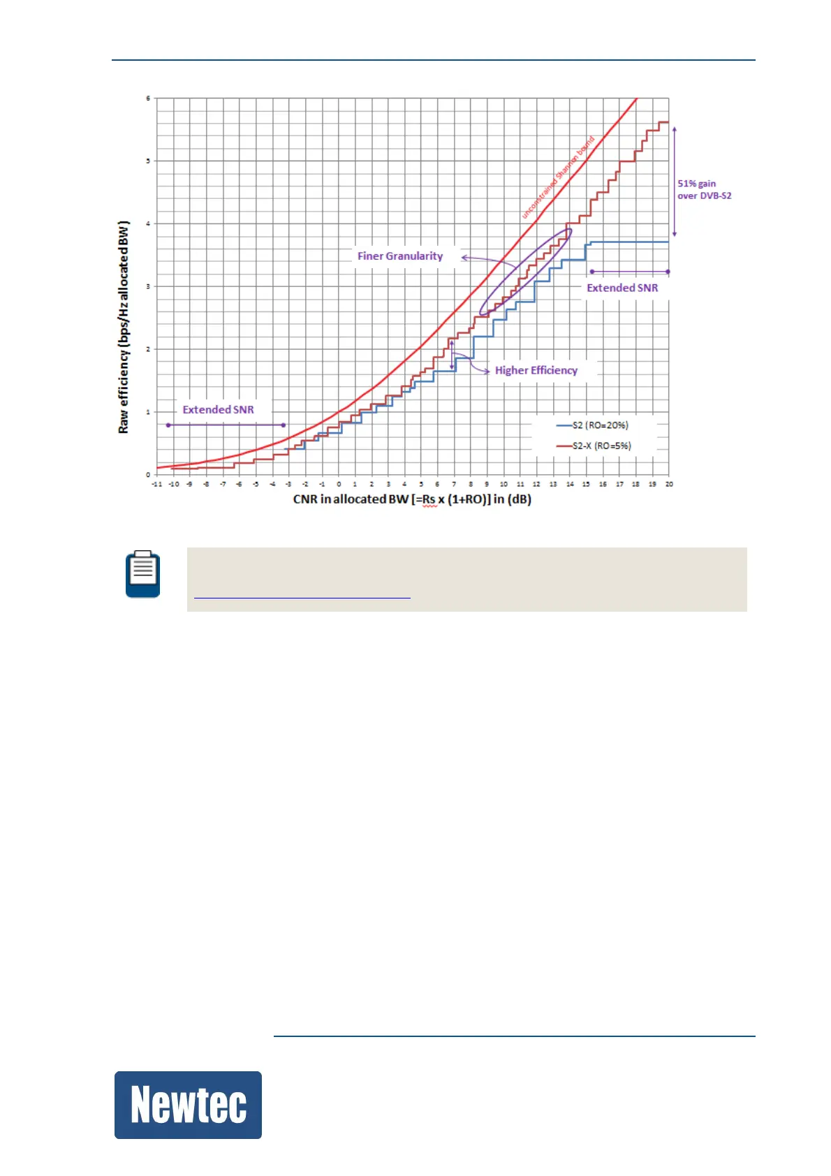 The following figure shows the efficiency of the DVB-S2X standard compared to Newtecs propriatary