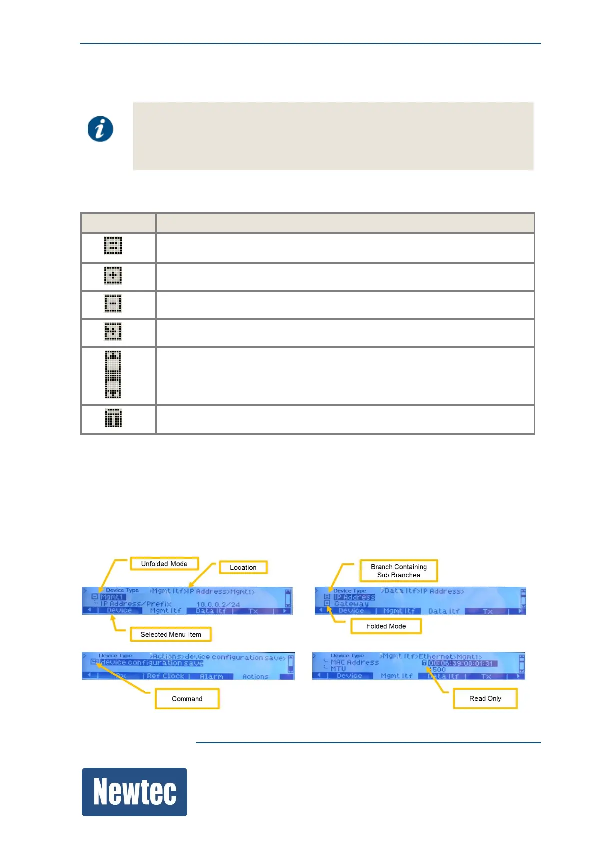 • A selectable item in the tree menu pane is visualized with a dark background.