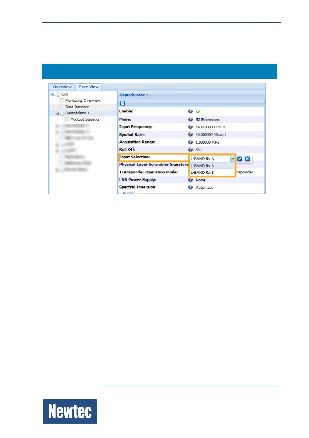 Newtec MDM9000 - L-Band RX a; L-Band RX B
