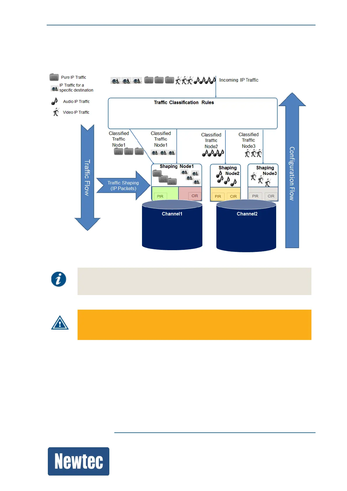 The following figure illustrates how the classified traffic is shaped by the traffic shaper.