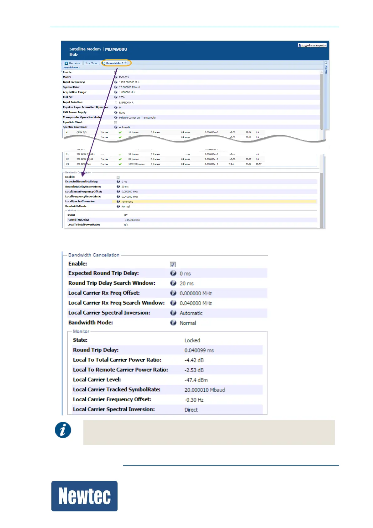 The Bandwidth Cancellation No Lock alarm is indicated. Proceed to configure the