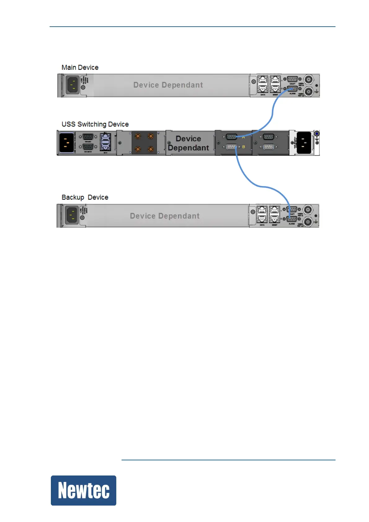 The following figure shows how to connect the alarm cables in a 1+1 redundancy system.