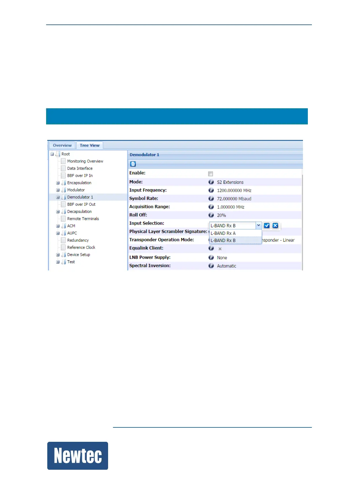 Newtec MDM9000 - L-band RX A; L-band RX B Input Interfaces