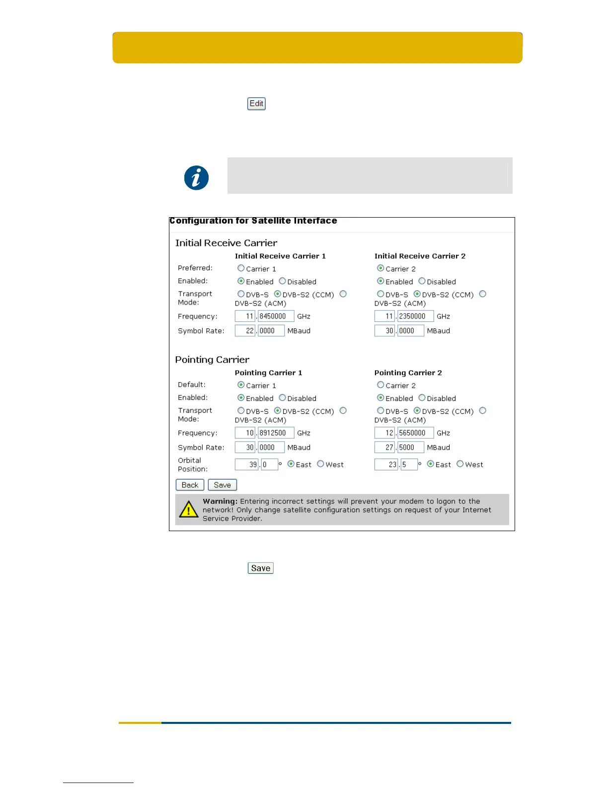 Figure 20 - Web Interface > Edit Configuration Satellite Interface