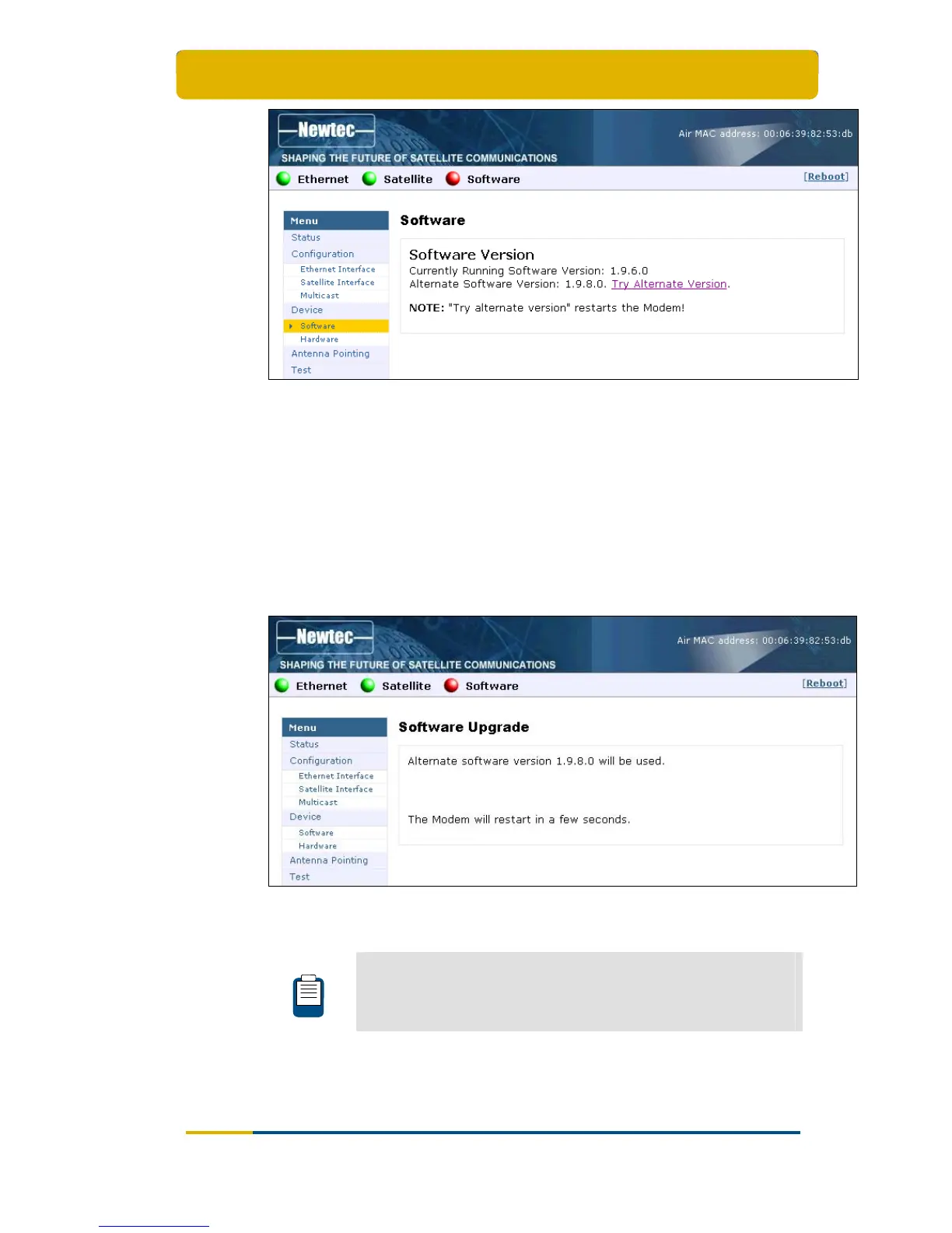 Figure 29 - Web Interface > Software Upgrade Confirmation