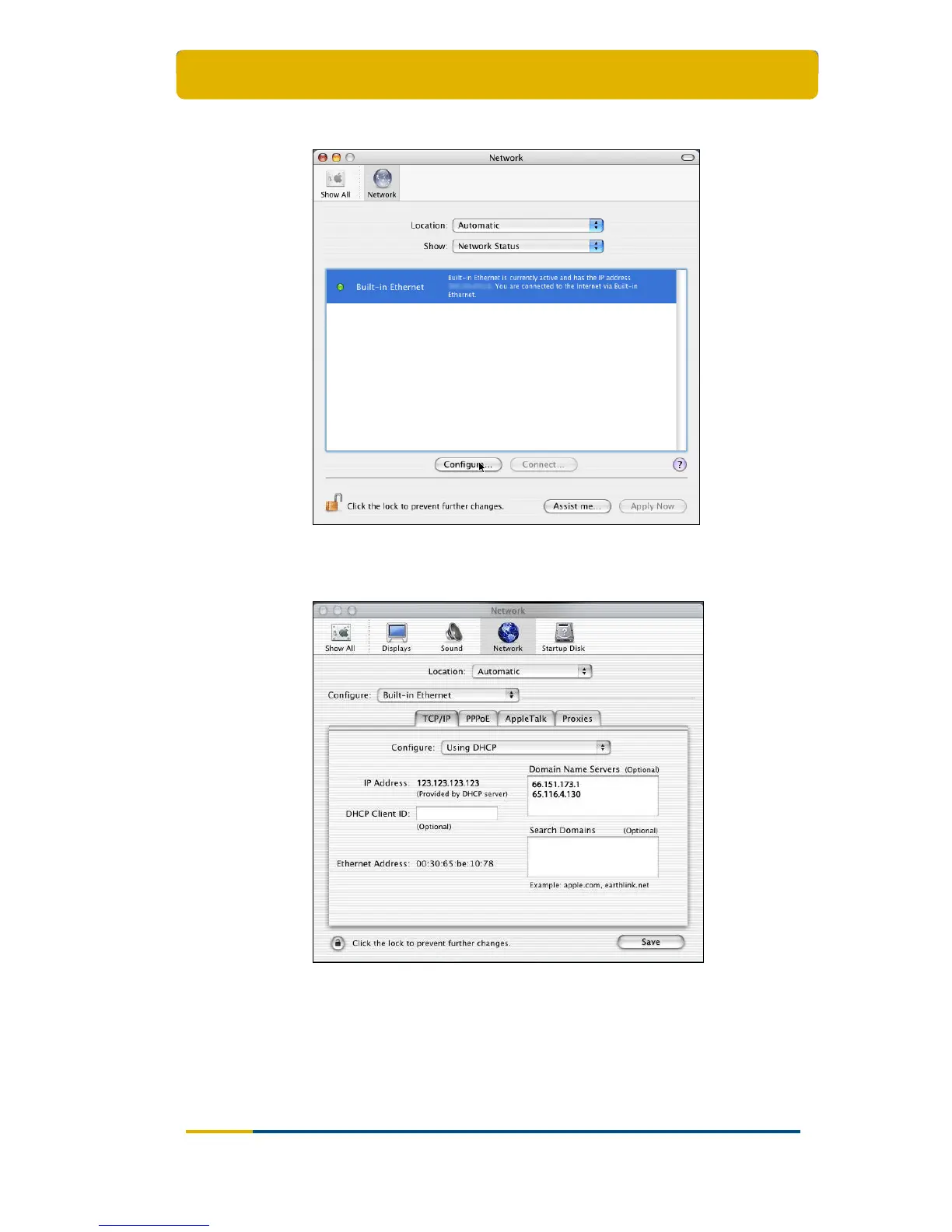 DHCP in the drop-down box next to Configure);