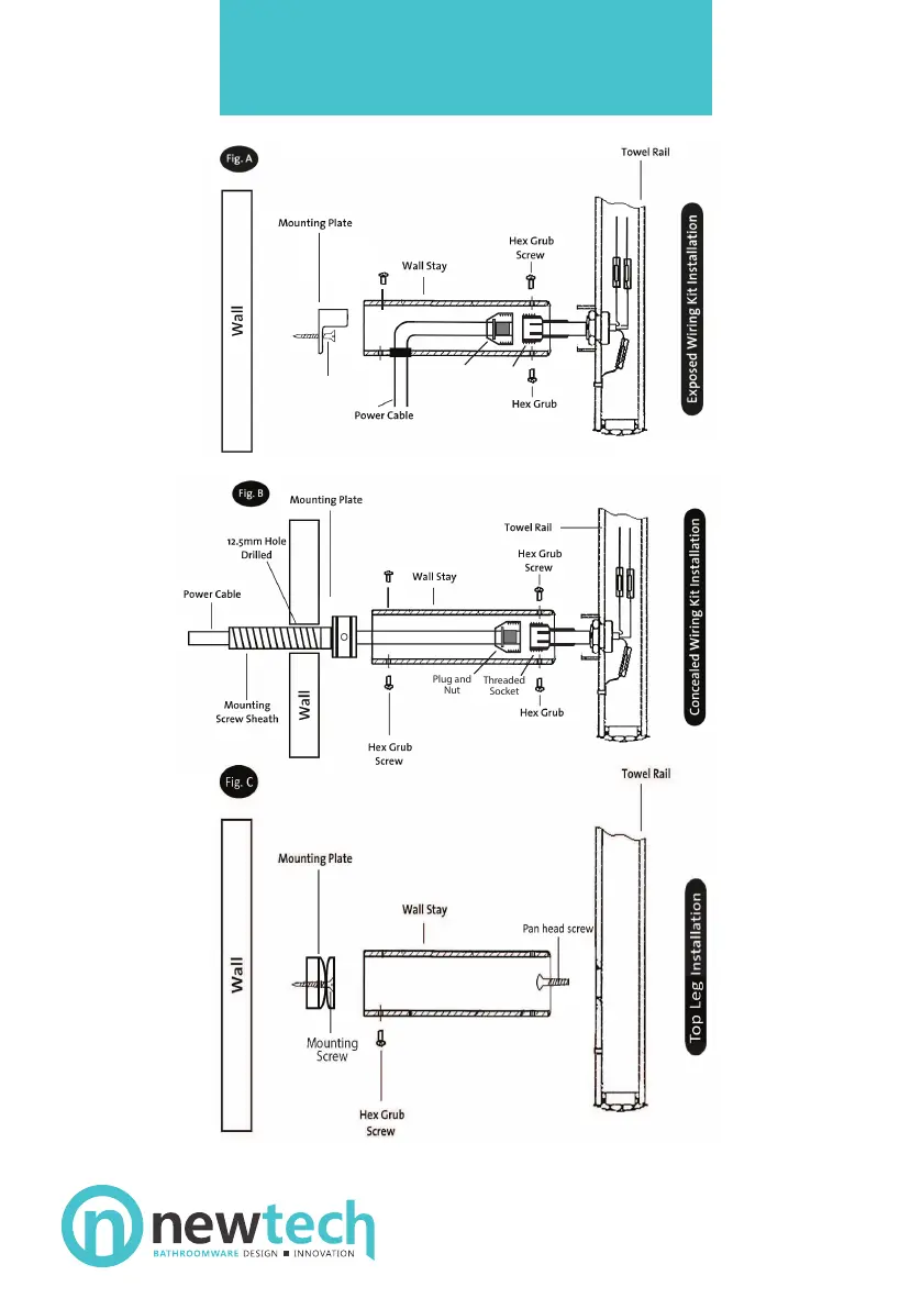 Fig. A also applies to installation of unheated towel rails.