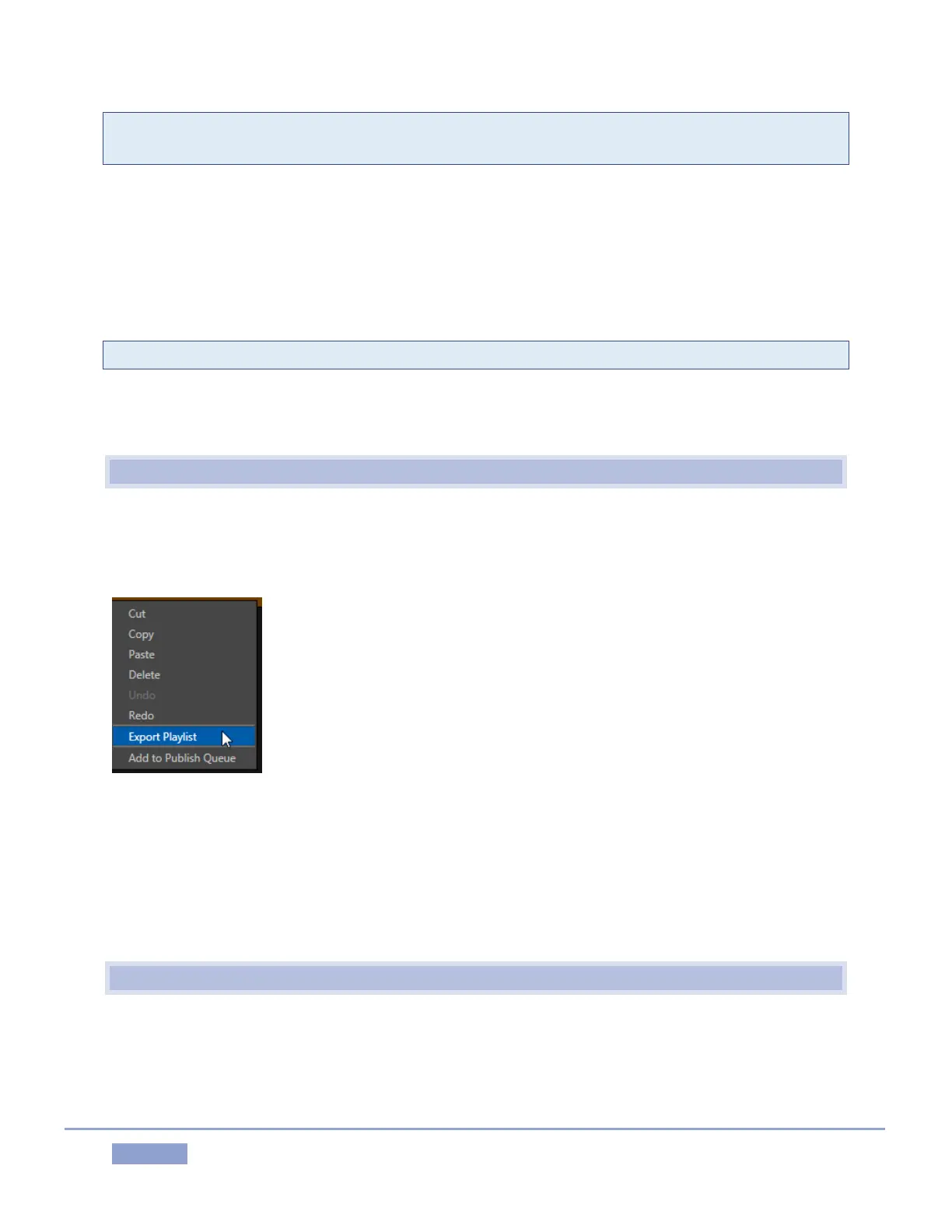 The PLAY LIST also features a context menu (Figure 126). Not unlike its CLIP LIST equivalent, the menu