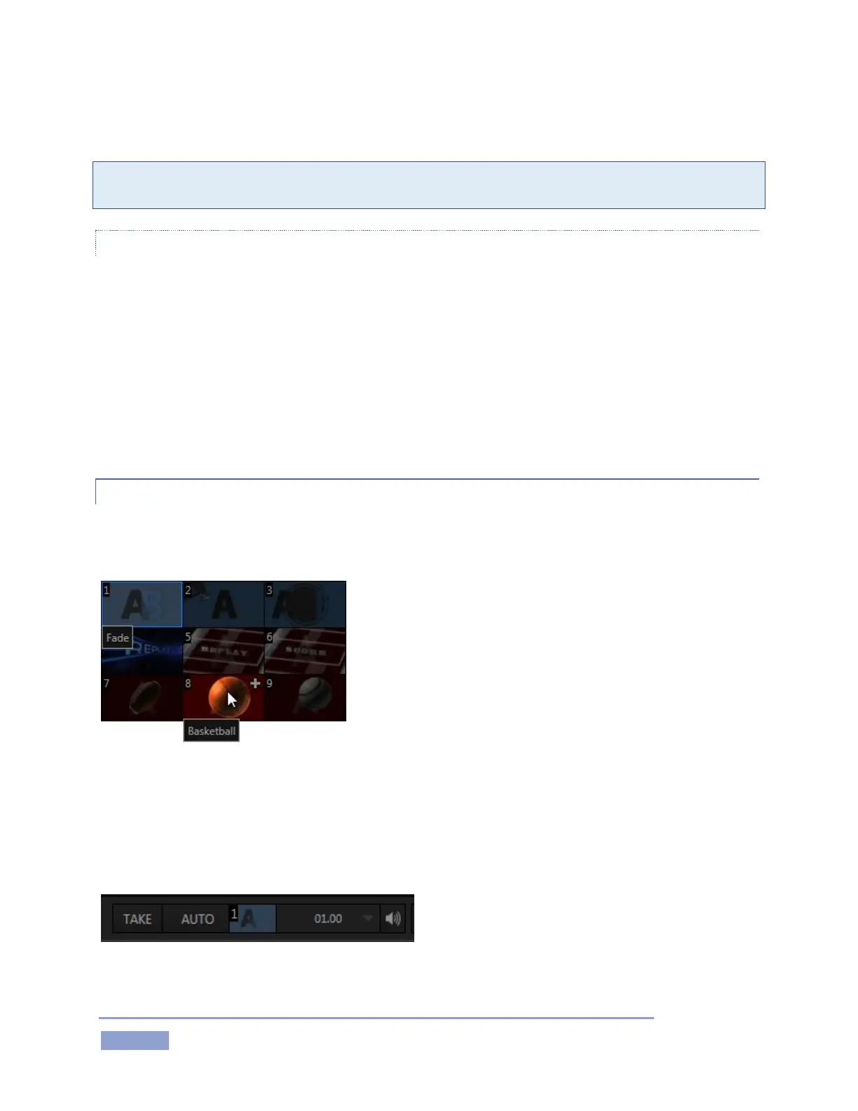 Click the small thumbnail effect beside the AUTO button in the onscreen Transition control area to reveal