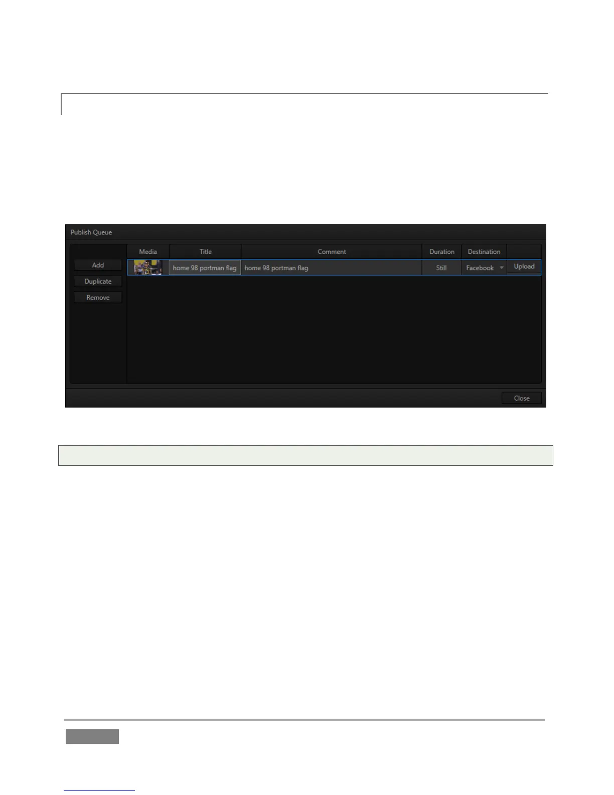 Comment column likewise allows you to add remarks for uploads to social media sites.