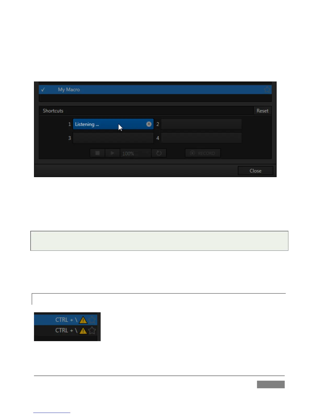 the Macro Configuration Editor panel; it will display a “Listening …” tag. Then press the desired