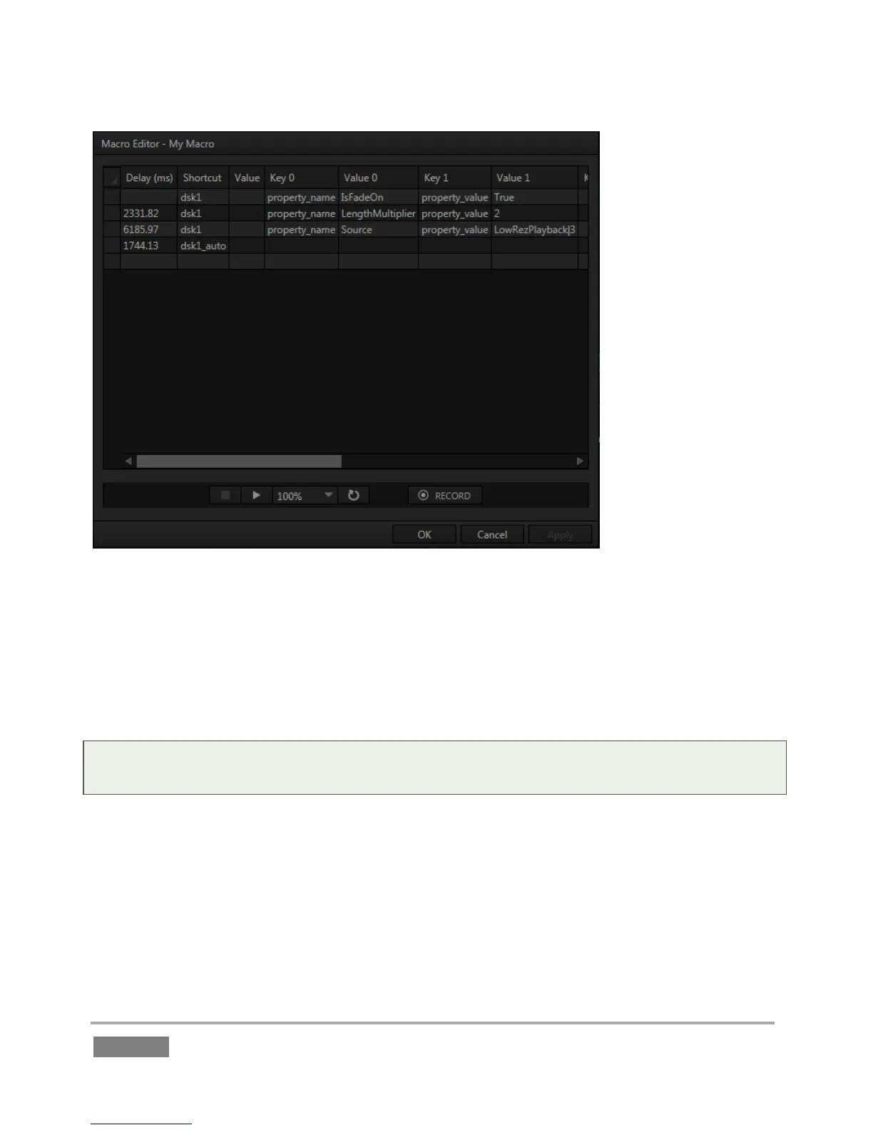 paste keyboard shortcuts are supported as well. When done editing a macro, click Apply (or