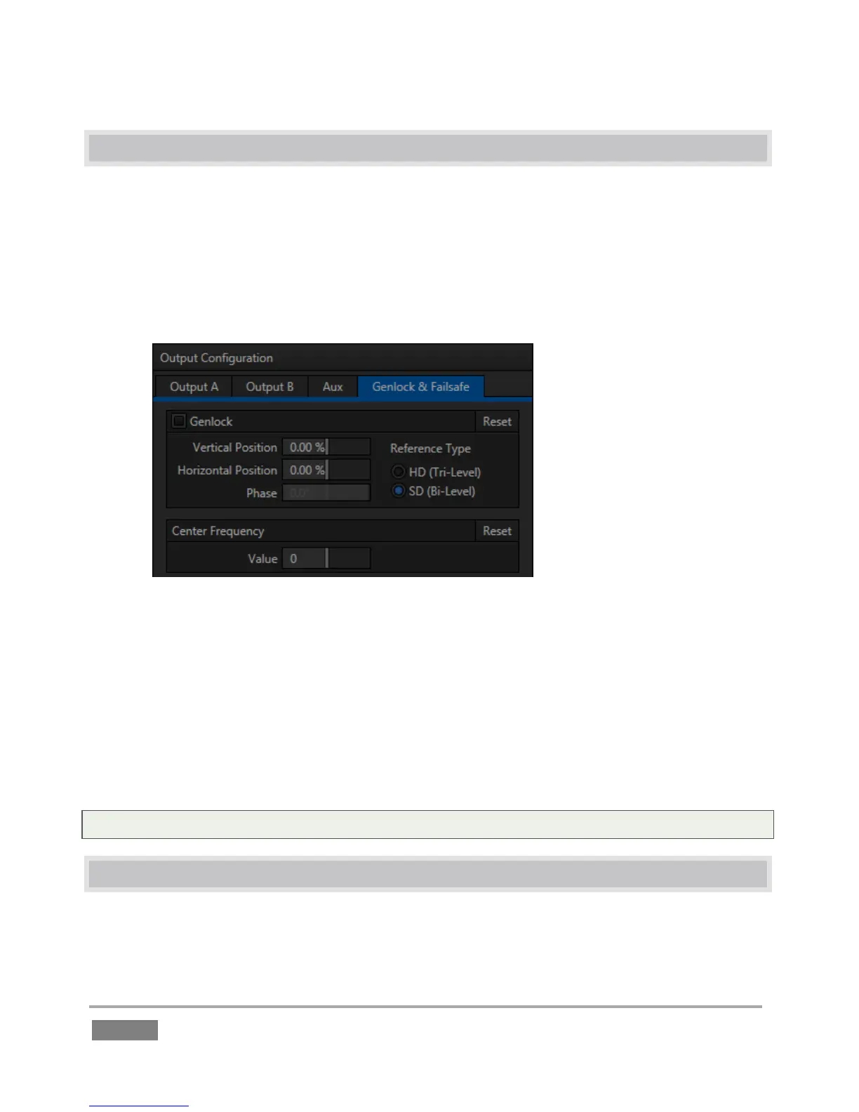 2. The default Reference Type in the Genlock settings group is SD (Bi-level), as this is