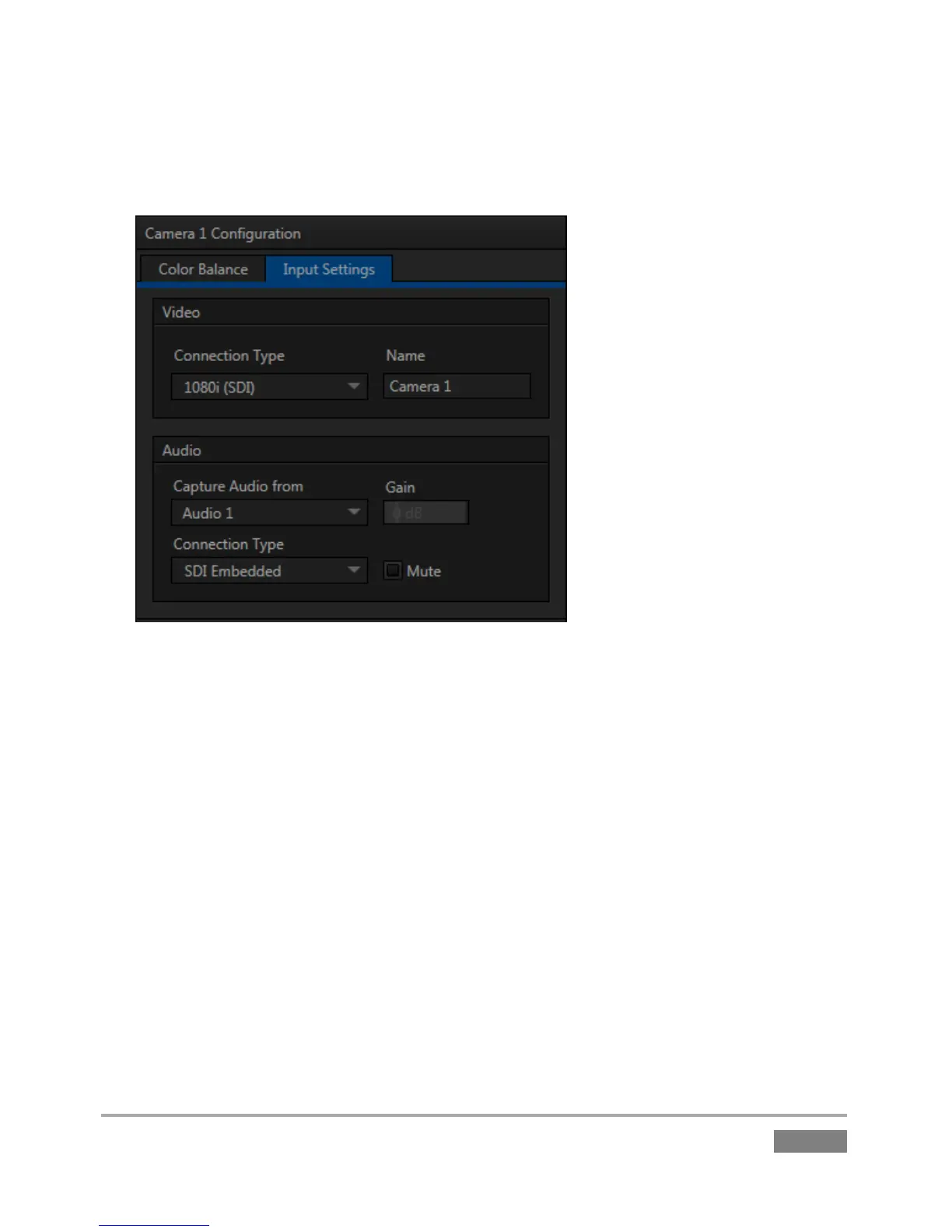 3. Click the Configuration button (gear) for Camera 1 to open a settings panel (Figure 29).