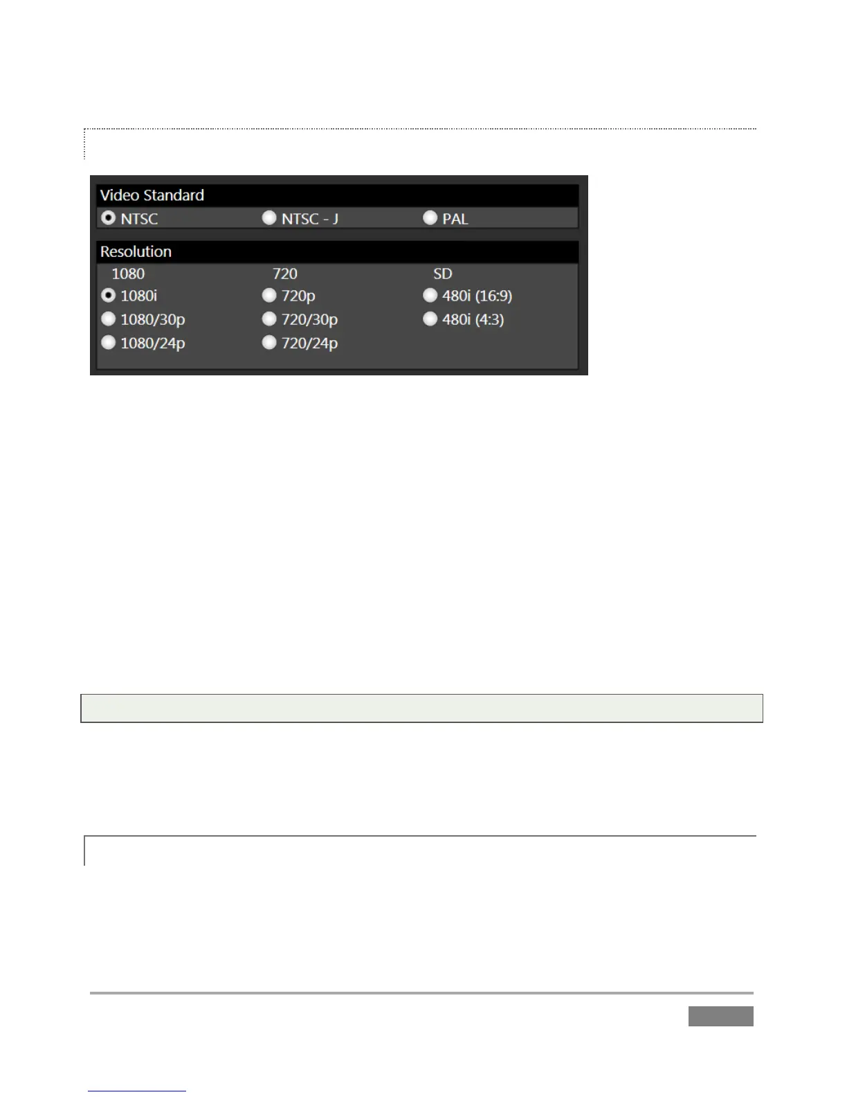 The Resolution radio button groups allow you to further configure the recording and output