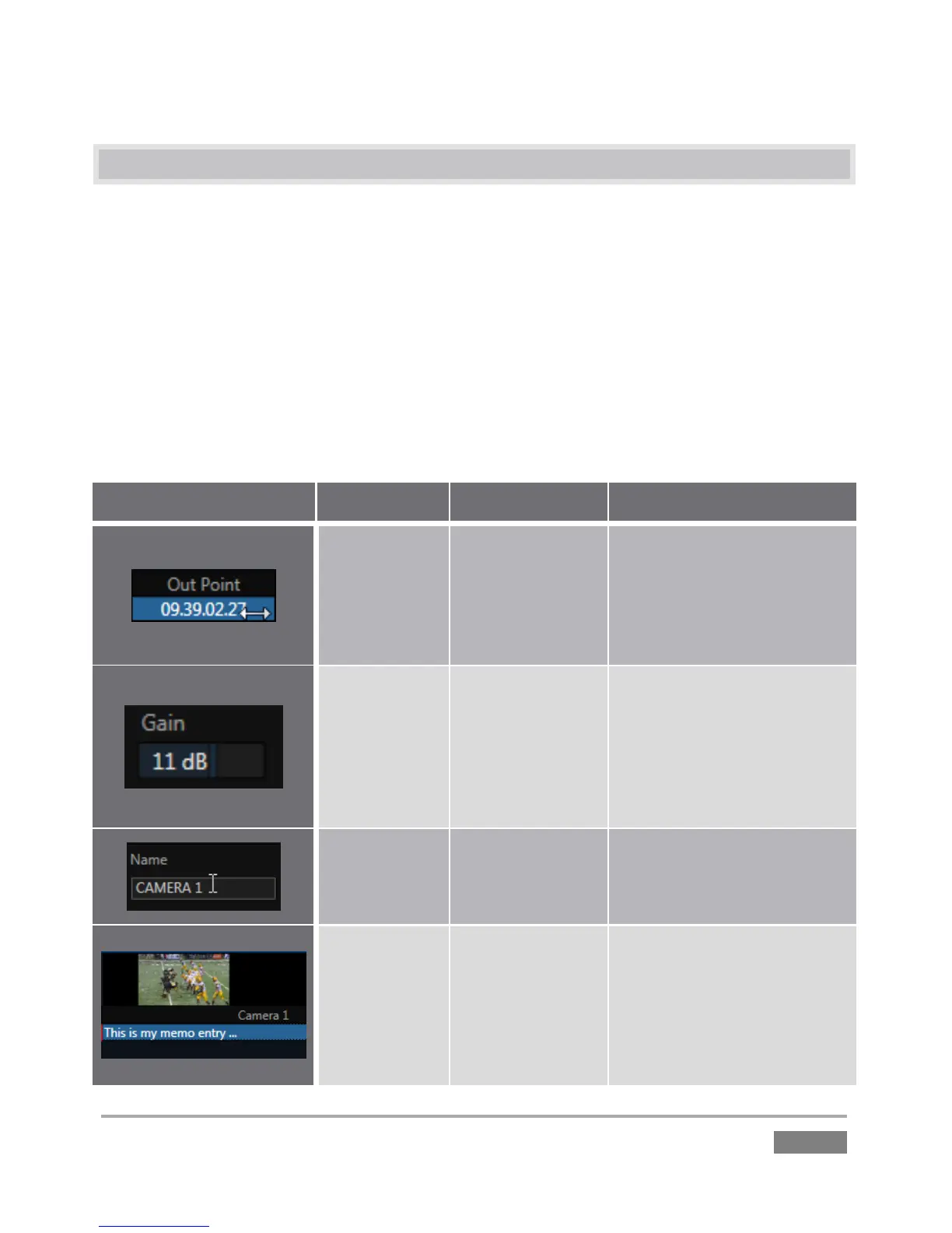 You will find various types of user controls in the Replay Desktop. Some examples are shown in