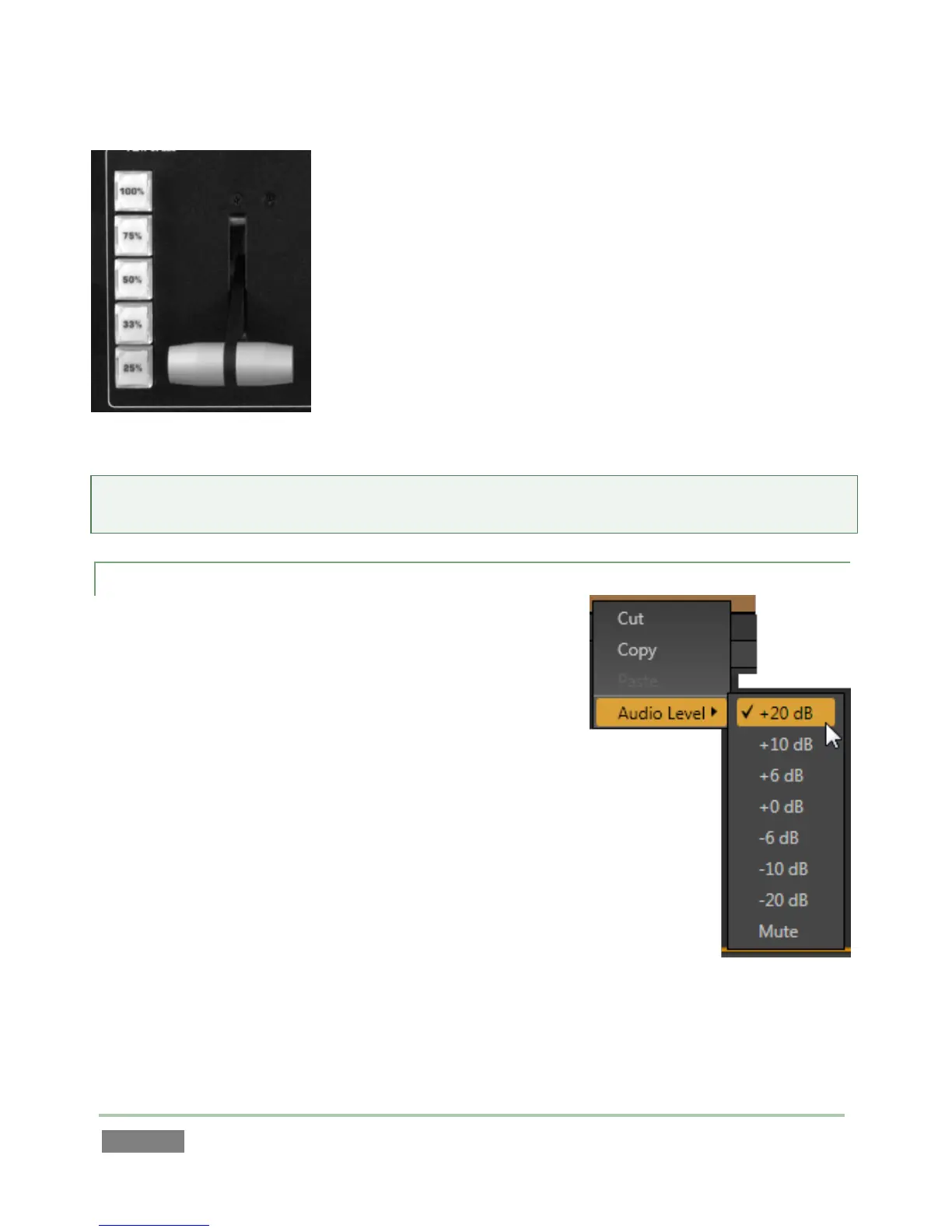 This menu also provides Audio Level settings for the recorded events (that is