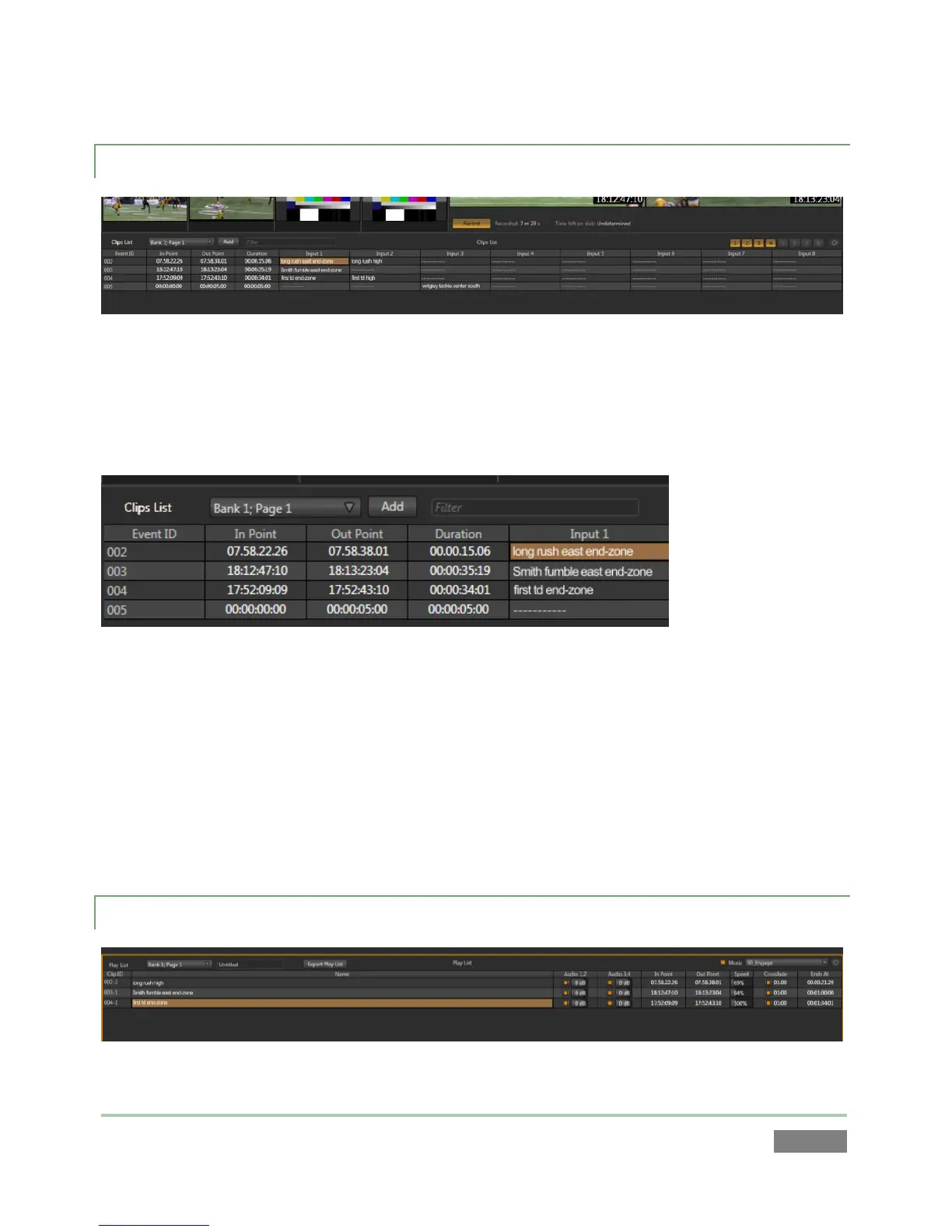 The Clips List offers four banks of four pages each to help you manage your recorded content. In