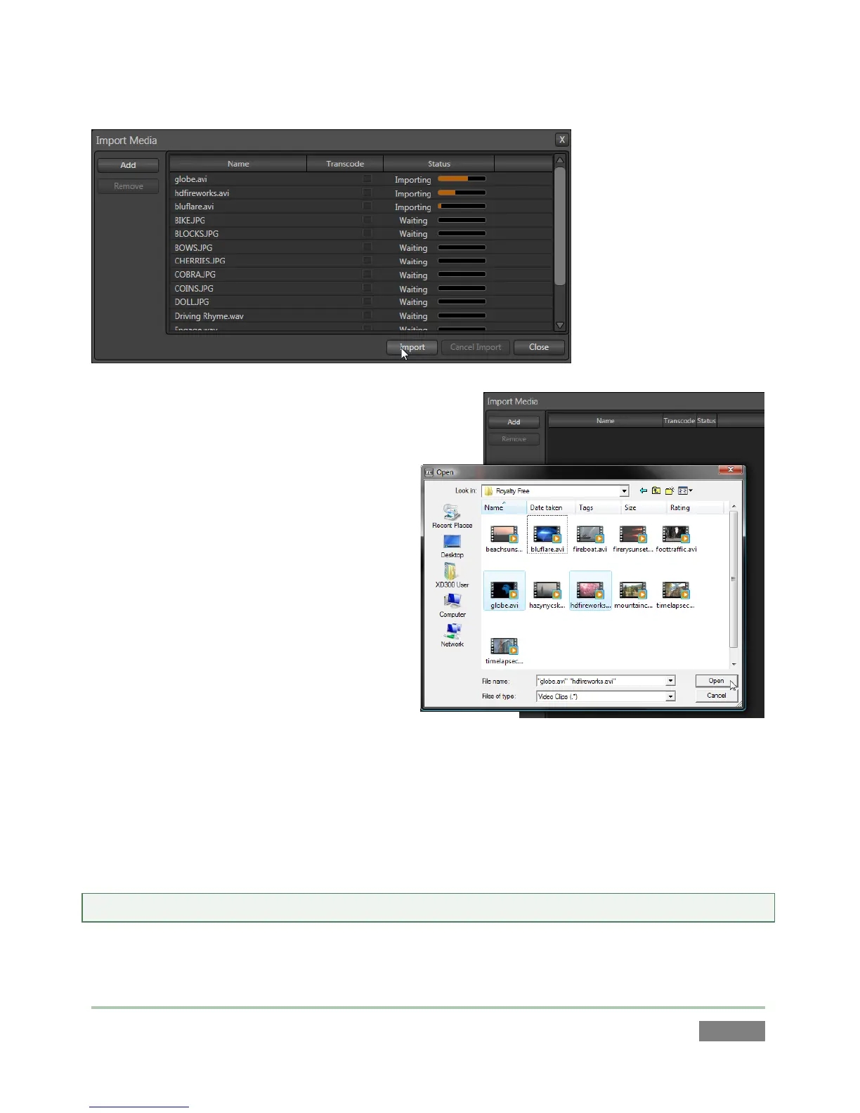 build a list in the Import Media file pane.