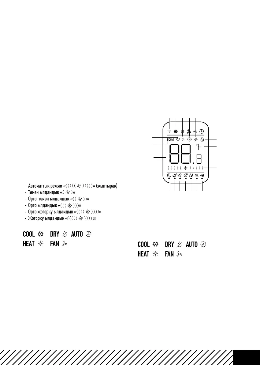 1. Алыстан башкаруу пульттун дисплейи.